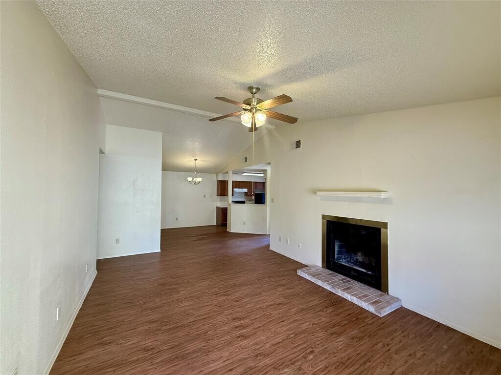 Discover this adorable three-bedroom, two-bathroom single-story home, perfectly situated on a quiet street. The very spacious living area is bathed in natural light and centered around a cozy fireplace, creating a warm and inviting atmosphere. The functional kitchen offers plenty of cabinet space and includes a refrigerator. The good-sized master bedroom features a private en-suite bathroom, while both secondary bedrooms offer excellent storage with walk-in closets and ceiling fans for year-round comfort. Step outside to enjoy the highly private backyard which backs directly onto a serene greenbelt, offering a peaceful, natural setting. This home is a charming retreat!