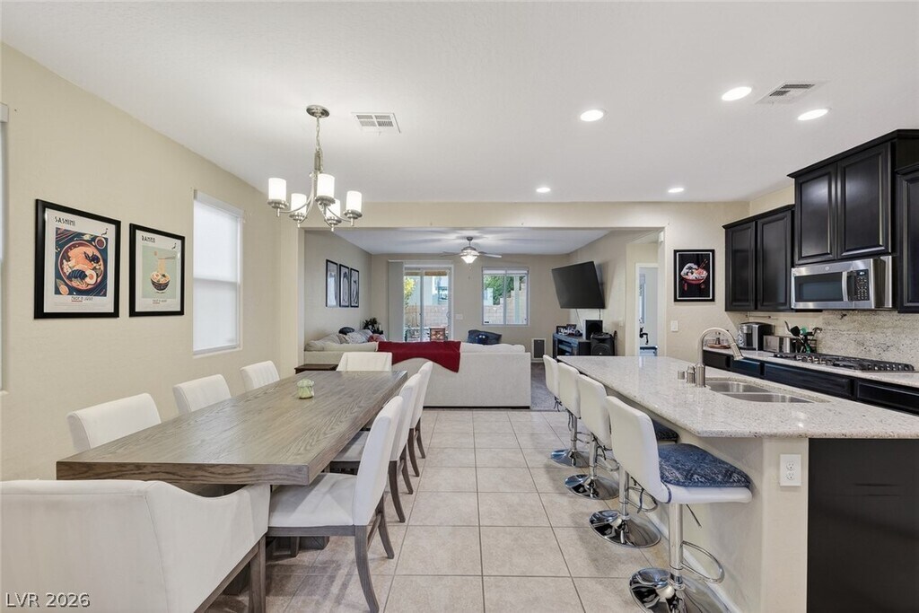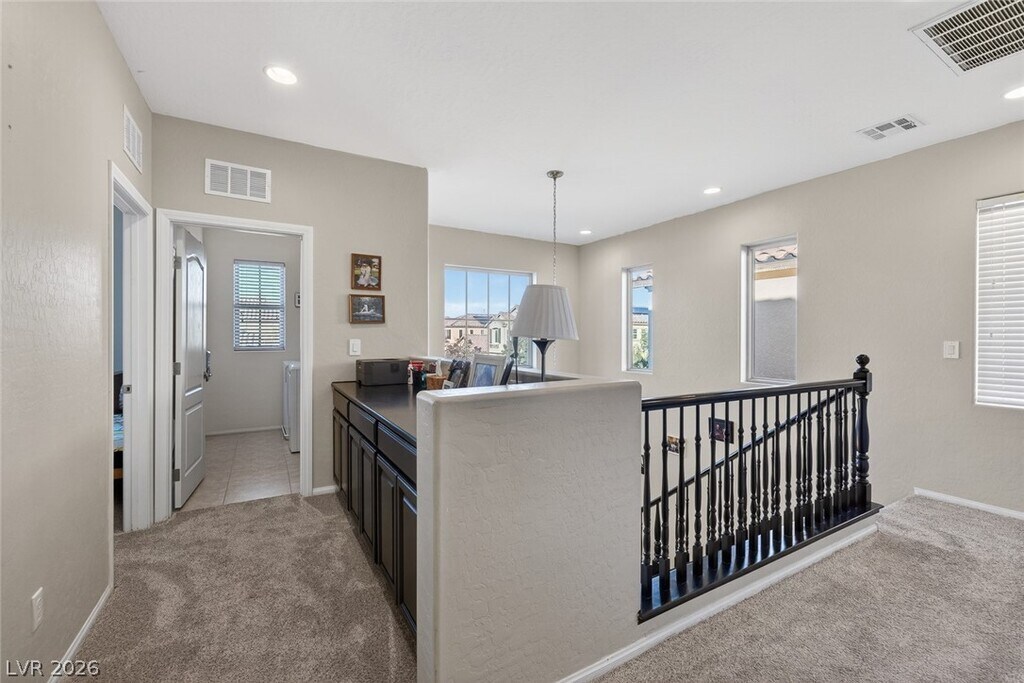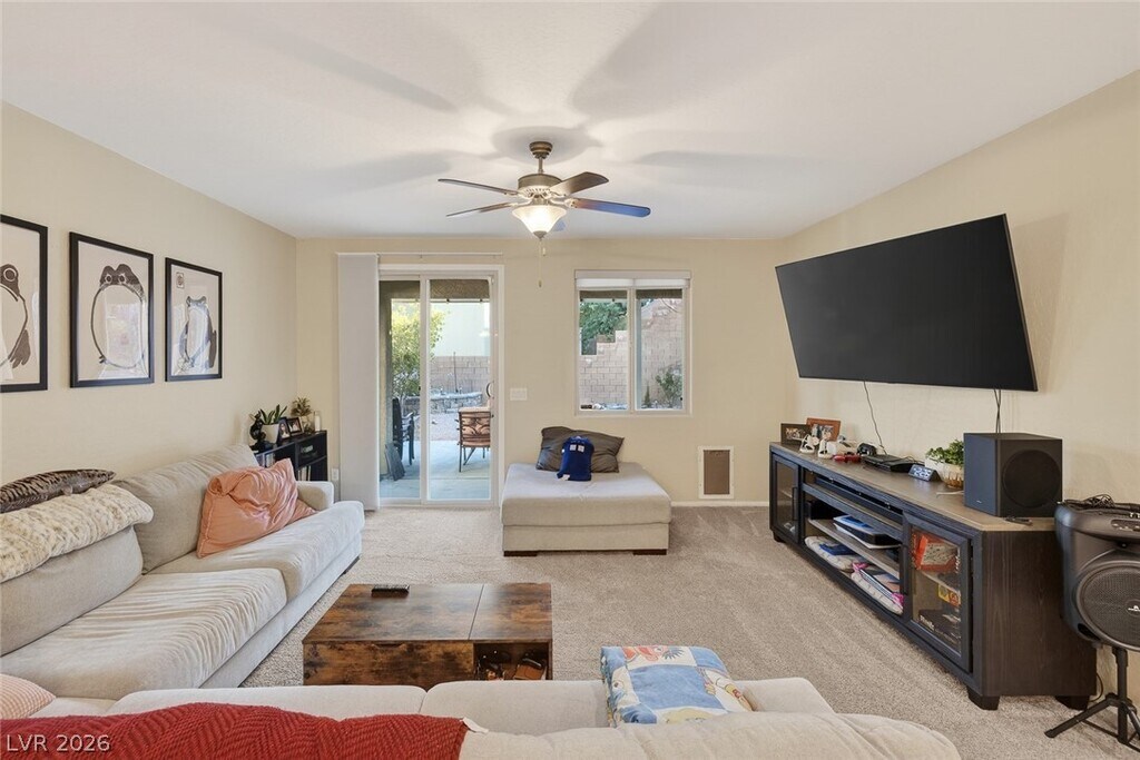 Paid-off solar and rare dual primary suites—one on each level—make this upgraded 2,500+ SF NW Las Vegas home stand out. Ideal for multigenerational living, the downstairs suite offers a private en-suite bath, dual closets, and its own laundry hookups. Upstairs, unwind in a spacious primary retreat featuring a spa-inspired bath, two walk-in closets, and a private balcony with stunning mountain views. The open-concept layout is perfect for everyday living and entertaining, showcasing an island kitchen with granite countertops, stainless steel appliances, and abundant natural light throughout. Step outside to a generously sized backyard with a covered patio, ideal for relaxing or hosting gatherings. Located in the sought-after Providence master-planned community, you’ll enjoy easy access to parks, scenic trails, and nearby Mount Charleston. Experience comfort, style, and energy efficiency all in one exceptional home. MLS ID 2775869