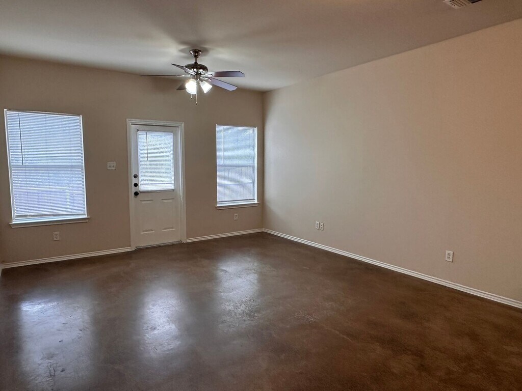 Move in ready. High ceilings and equipped w/ fridge, dishwasher, microwave, stained concrete floors and washer/dryer hookup. Backs up to a greenbelt it's a small backyard that's privately fenced. Tenants will maintain the backyard. This location has quick access to 1604, I-35, to the Forum Shopping Center, Restaurants, grocery stores, and Randolph AFB and much more. 15+ Month Lease: $1,150 12 Month Lease: $1,195