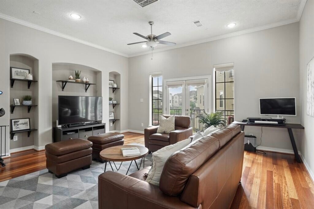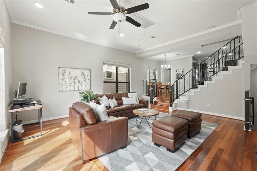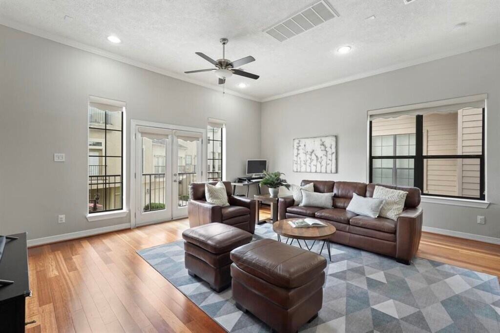 This three-story residence is situated in a prime location with an easy commute to the Texas Medical Center,ensuring convenience for medical professionals or anyone working in the area with additional easy access to downtown,Galleria area,and Greenway Plaza. This home has been meticulously maintained and is awaiting its new owners. Enter the first floor with a large entryway,bedroom w/private bath,and access to the back yard. The main living area is inundated with tons of natural light,beautiful Brazilian cherry wood floors,built in shelves,a private balcony for an evening cocktail or morning coffee. The kitchen is wonderful with under cabinet lighting,recently replaced microwave,oven,disposal,and faucet. The pantry is an organized persons dream with Elfa shelving. The primary bedroom is a serene retreat with the most amazing closet system! The community also offers an on-site dog park which is fenced and the perfect opportunity to meet other owners of our furry friends. MLS# 85092288