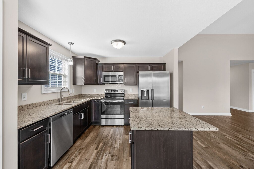 Private landlord! This stunning 2022-built ranch home has been meticulously maintained and is move-in ready for a new tenant. The open-concept main living area is perfect for gathering and entertaining. The living room features vaulted ceilings and a beautiful floor-to-ceiling shiplap fireplace with gas logs, creating a warm and inviting atmosphere. The kitchen includes an upgraded island, ample counter space, and a spacious pantry for excellent storage. Pet-friendly!