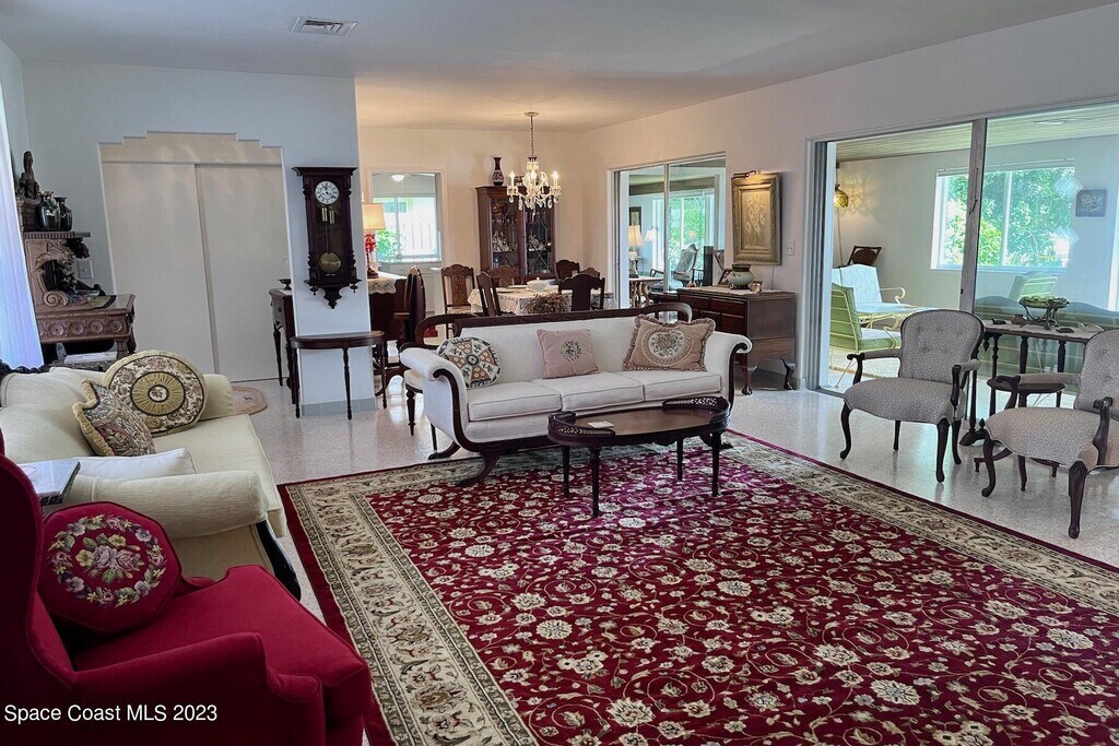 Short Term Rental RIVER TO RIVER! Bring your boat & spend the winter enjoying the Florida lifestyle in this meticulous mid-century classic home. You'll sense something special about the narrow southern tip of Merritt Island as you cross Mather's Bridge (a low-level swing bridge) then marvel at the spectacular views along the way. Have your coffee or fresh squeezed juice while watching the sunrise on the Banana River as dolphin & manatee play. The private boathouse & pier is the perfect place to keep your boat,cast a line or relax with a book. If the timing is right you could see a rocket launch! After a day of kayaks,the beach,or lounging by the pool,you can view the sunset on the Indian River Lagoon. Pool is shared. Base rent plus vacation tax