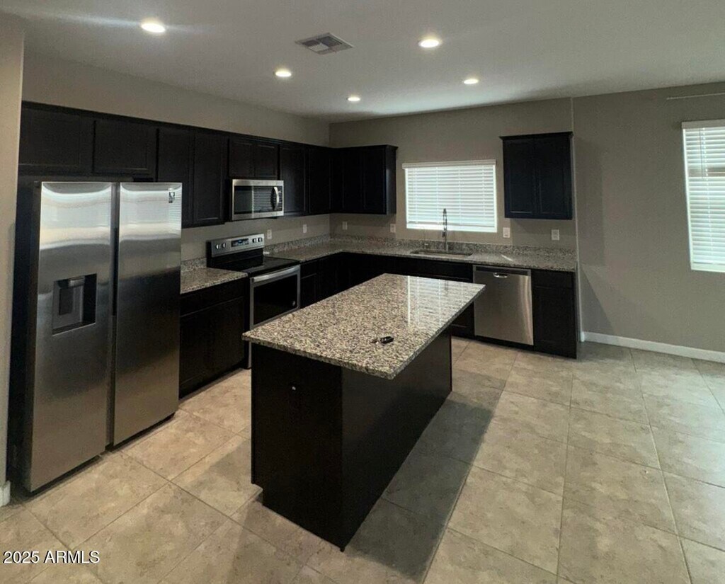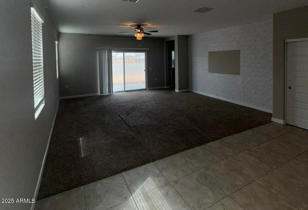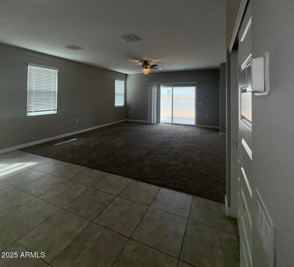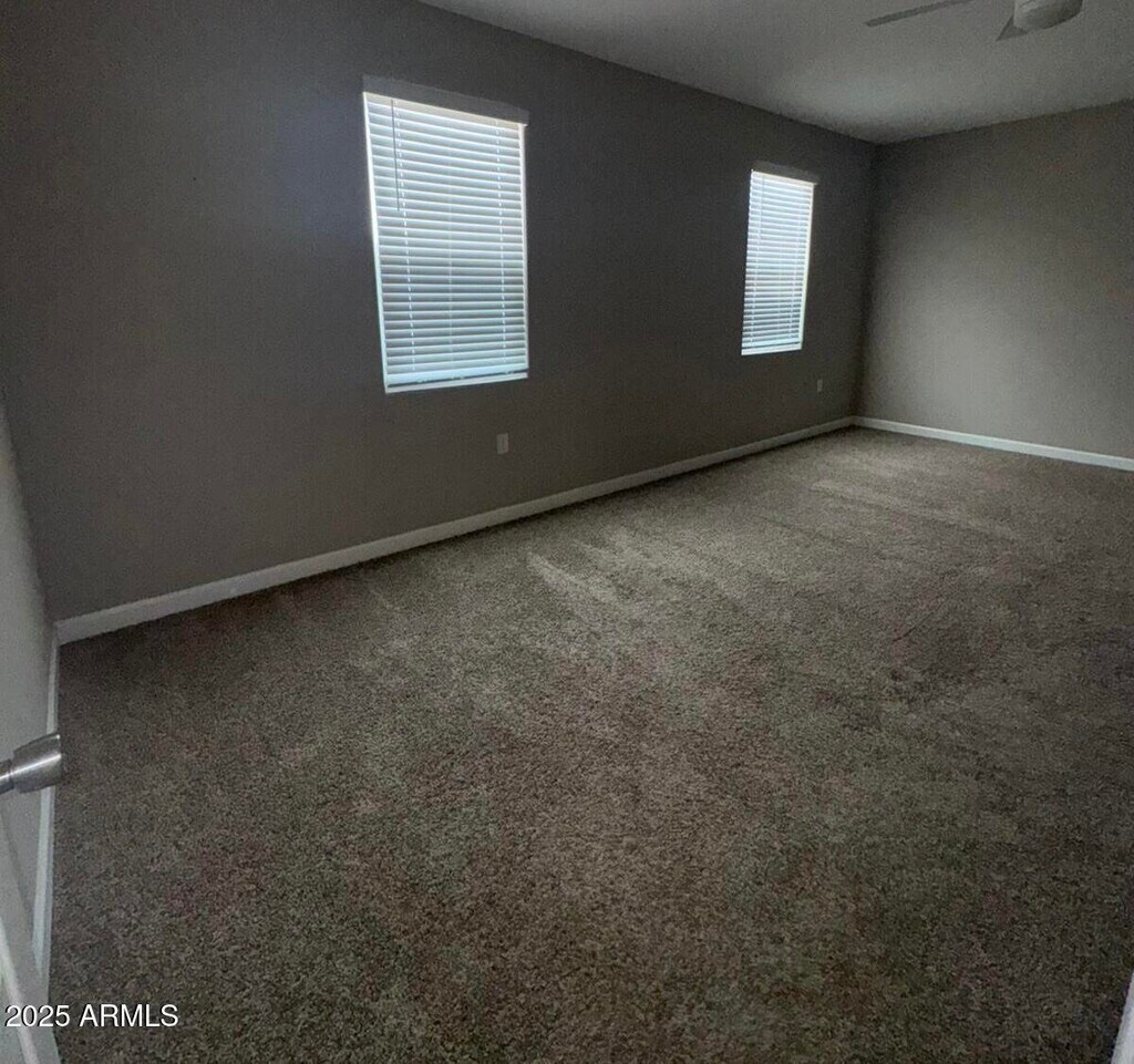 LOCATION! Corner Lot in Prime Laveen Community. This spacious single-story Blackstone floor plan offers 5 bedrooms,3 bathrooms,and a 2-car garage. The open-concept kitchen overlooks the great room and features granite countertops,upgraded cabinets,and stainless steel appliances including a newly installed RO system. The primary suite includes a full bath with double sinks and a walk-in closet. Upgrades include: Smart Home technology,Taexx built-in pest control,rain gutters,20x20 tile throughout with carpet in all bedrooms and great room,and two-tone paint. Washer,dryer,and refrigerator are included. Property is conveniently located near Baseline & Loop 202,with mountain views and easy access to shopping. Rent is flexible!