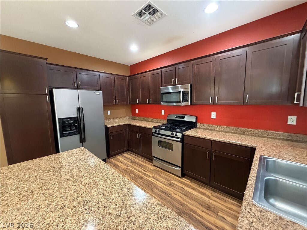 Beautiful three bedroom, 2.5 bath home located in Providence. Features laminate wood flooring throughout the main level and an open concept living, dining, and kitchen area. The kitchen includes a breakfast bar, granite countertops, and stainless steel appliances. The spacious primary suite offers a walk-in closet and dual sinks. Enjoy a backyard with a patio, a two-car garage, and access to all the amenities the Providence community has to offer. List price includes rent, sewer, and trash. lose to 215 & 95 freeways. Close to the New Smiths & Albertsons complex which includes amazing food, coffee, banks & shopping options. Apply online today!