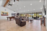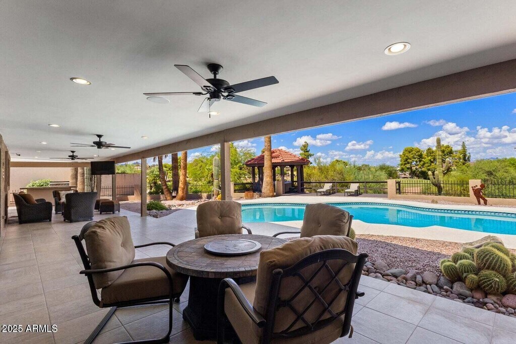 Enjoy golf course views and Arizona living in this private smart home with Control4 system. The spacious primary suite offers bath and walk-in closet,along with three additional bedrooms plus a flex or office space. Outdoor living includes a diving pool,hot tub gazebo,built-in BBQ,and fountain. Central vacuum and two newer AC units provide comfort and efficiency. Walking distance to Desert Canyon Golf Club and minutes from shopping,dining,and Fountain Hills Park.