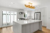 Coastal Living reimagined, this stunning Dover Shores 2 bedroom, 2.5 bath townhouse delivers the feel of a brand-new home in one of Newport Beach's most coveted neighborhoods. No detail was overlooked in this top-to-bottom renovation. Just move in and start living the coastal lifestyle. The open-concept main living area is anchored by a white-painted brick fireplace and flows seamlessly into a chef's kitchen that will stop you in your tracks. Crisp shaker cabinetry, quartz countertops, a massive center island with sink, subway tile backsplash, stainless steel appliances including a professional-grade gas range, and a statement gold pendant light chandelier make this kitchen as beautiful as it is functional. Wide-plank hardwood-style flooring and recessed lighting run throughout, tying the living and dining spaces together with warmth and continuity. Additionally, there is a detached two car garage, with ample storage. The bathrooms have received the same designer treatment, featuring quartz vanities, shaker cabinetry with mixed metal hardware, tiled walk-in showers with glass enclosures, and elevated fixtures that bring a boutique hotel feel to your everyday routine. Outside your door, residents enjoy exclusive access to community pool and club-house. Steps from the scenic Back Bay trails, and the Newport Aquatic Center, all within minutes of top-rated schools and the shops and dining of 17th street. Turnkey perfection in Newport Beach opportunities like this don't last!