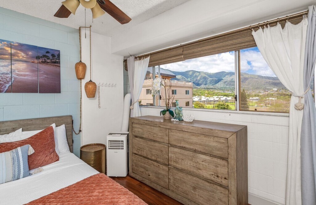 Welcome to this updated 2 bedroom, 1 1/2 bathroom, beautifully furnished approximately 757 sq. ft. Puuone Towers condo offers sweeping views of West Maui Mountain, Iao Valley, and the Ocean. As you enter, features an open floor plan with tile and wood floors throughout, freshly painted with accent walls, and with window coverings in each room. A sliding glass door to enjoy cool breezes and ocean views from your covered private lanai off the main living area with two chairs to enjoy the ocean view. Two furnished bedrooms with closets and also includes a portal AC unit in the primary bedroom and fans in the other bedroom for your added comfort. Renovated 1 1/2 bathrooms with a luxurious bath/shower combo. The well-appointed kitchen has stainless steel appliances, including a microwave. Amenities include a stackable full-size washer/dryer, and basic internet, included for your convenience. This unit is located on the fourth floor with an elevator, Puuone Towers is a secure boutique complex with a locked lobby offering peace of mind to all residents. You can relax poolside at Puuone Towers pool or use the grill to BBQ in the recreation area. One assigned covered parking stall is included. Puuone Towers is conveniently located in the heart of charming Wailuku town and close to the State and Maui County buildings, schools, medical facilities, restaurants, shopping, office buildings, parks, and more local businesses. Wailuku town is a short distance, centrally located to enjoy beaches and amazing sunsets. Furnished, Air Conditioning, Kitchen which includes Microwave, Range/Oven, Refrigerator, Covered Lanai, Fourth Floor with Elevator, and One Covered Assigned Parking Space. Full-size Washer/Dryer, and Basic Internet Included. Rent: $2,800.00 + GE Tax $131.94 = $2,931.94 12-Month Lease to Start, Available May 1, 2026 Tenant is responsible for Electric & GE Tax of 4.712% Basic Internet Included No Smoking, No Pets Showings by Appointment Only, Please Call or Email