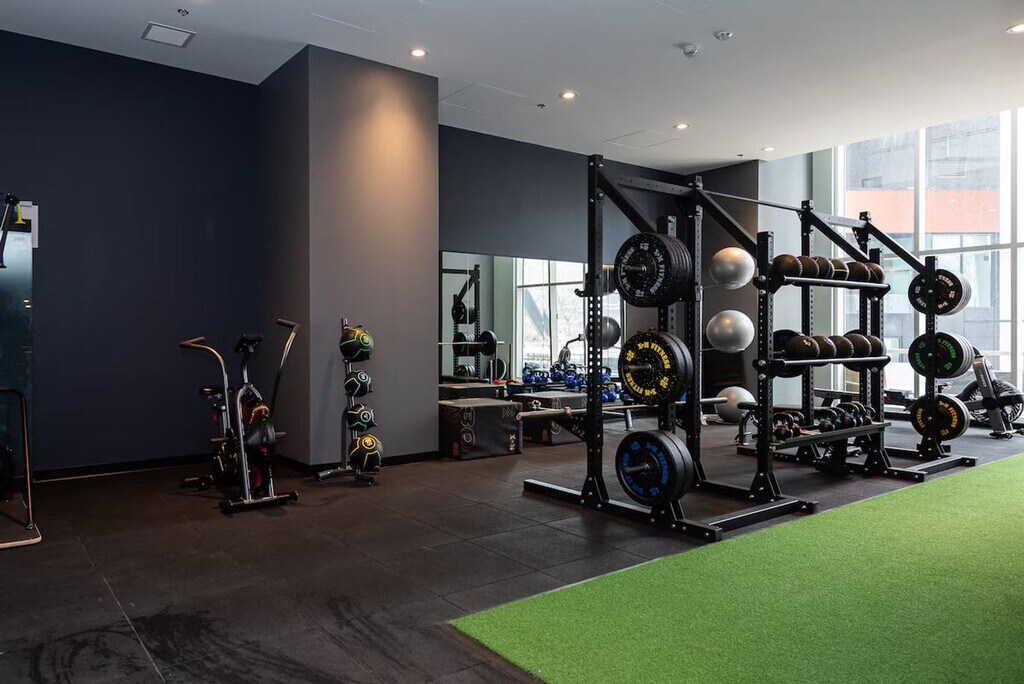 Located in the bustling downtown core of Montreal, adjacent to the Bell Centre, this property epitomizes luxury and practicality, setting a new benchmark for urban living, especially tailored for young professionals, newcomers, and students. Situated mere steps away, residents enjoy easy access to the attractions of the Golden Square Mile and the historic charm of Old Montreal. This development fosters an environment ideal for both academic pursuits and professional development. This new condo is very well located near the Bell Centre, just steps away residents have access to the Golden Square Mile’s attractions. It features 1 bedroom with a queen bed and 1 bathroom. Indoor parking with in/out privileges is available for an additional fee, depending on your length of stay. We offer a variety of cleaning services that include bi-weekly or monthly options, available for an extra charge. Residents enjoy easy access to the attractions of the Golden Square Mile and the historic charm of Old Montreal, making it an ideal location for both academic pursuits and professional development. No parties of any kind or loud noises that can alter the harmony of residents are allowed. No smoking of cannabis, cigarettes, or any kind inside the apartment, balcony, or the building. Care for your home away from home. The apartment offers shared workspaces, a conference room, and a workspace with a view, making it ideal for remote work. [SI]