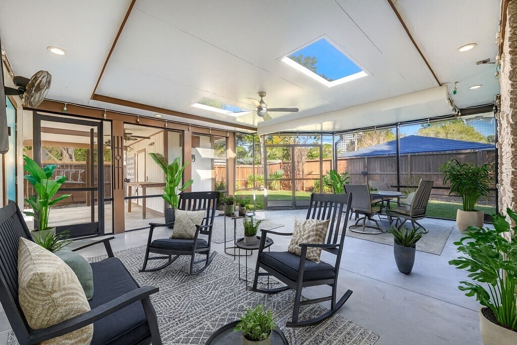 This beautifully maintained Mid-Century Modern home in Walnut Bend offers a rare blend of architectural character and thoughtful updates. The home features extra living room space,fresh paint,and well-cared-for systems and finishes throughout. A spacious screened-in porch creates true indoor–outdoor living,connecting the home to a large backyard and green space—perfect for relaxing or entertaining. Inside,natural light fills the open living areas,enhanced by skylights and French doors that open into the sunroom. The kitchen is both stylish and functional with a waterfall island,custom storage,stainless steel appliances,a gas range,and a huge refrigerator. The primary suite features an updated bath and a generous custom closet. Two additional bedrooms share a cheerful bath. Outside,you’ll find a long driveway,covered parking with an oversized storage room,and plenty of space for parking. Washer & dryer included**$100,000 Liability to Landlord Insurance Policy Required** MLS# 23352147