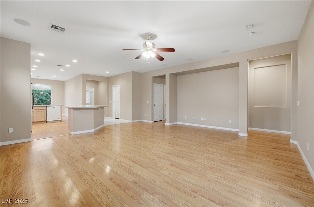 Single story 3-bedroom, 2-bathroom. Situated on a corner lot, with a spacious 2-car garage and a separate laundry room. The kitchen is equipped with a gas stove top, a large island with quartz countertops, and a breakfast bar. All kitchen appliances are included, also a washer/dryer. The home has carpeted bedrooms, wood laminate flooring throughout, and a tiled entryway. The primary bedroom boasts a walk-in closet and a large bathroom with a full soaking tub and shower. Ceiling fans and blinds are installed throughout the home for your comfort. The backyard is a desert oasis, complete with artificial turf, a covered patio, and a gazebo. The home also includes a water conditioner system. The location is unbeatable, with quick access to I-15, Suncoast Casino, schools, shopping, and a park. Trash, Sewer and Tenant Portal Fee are included in rent! Restrictions: - Non-Smoking - No Section 8 - No Pets - Tenant maintains water softener system - Tenant maintains landscaping
