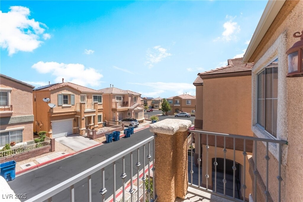 Discover this well-maintained 2-bedroom home located in the desirable Lone Mountain area. The kitchen features a convenient breakfast bar, ample cabinetry, and essential appliances. A half bathroom is located downstairs for added ease. Upstairs, you'll find two spacious bedrooms each with their own bathroom, including one with a private balcony offering beautiful mountain views. A small upstairs nook provides the perfect space for a computer desk or reading area. Enjoy the low-maintenance backyard with desert landscaping—ideal for relaxing or entertaining.