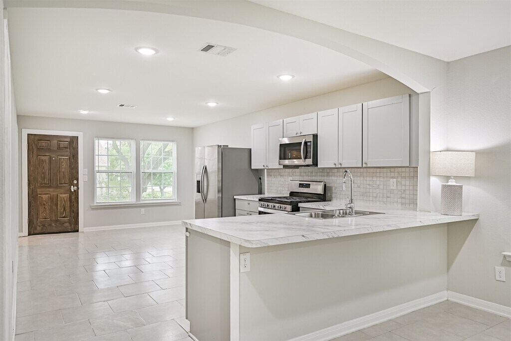 Welcome to this charming and well-maintained 3-bedroom,2-bath home offering 1,277 sq ft of comfortable living space! This home features a bright and open-concept layout with a seamless kitchen-to-living room flow,perfect for everyday living and entertaining. Enjoy a spacious kitchen equipped with a gas range,breakfast bar,and refrigerator included. The home showcases a mix of tile and wood vinyl flooring throughout,along with recessed lighting and ceiling fans in the rooms for added comfort.Natural light fills the home,creating a warm and inviting atmosphere. Step outside to relax on the front porch or enjoy the backyard with a designated picnic area—great for gatherings or unwinding after a long day.Additional conveniences include an in-home utility room with washer and dryer included. Prime location with easy access to I-10,Loop 610,and the Washburn Tunnel—making commuting a breeze! MLS# 51868547