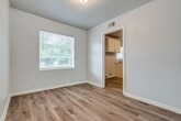 Welcome to your charming abode! Nestled in a serene neighborhood, this delightful 3-bedroom, 1-bathroom home exudes warmth and comfort. As you step inside, you're greeted by a cozy living space adorned with large window that flood the room with natural light. The large kitchen boasts modern amenities and ample cabinet space, perfect for culinary enthusiasts to whip up their favorite dishes. The three well-appointed bedrooms offer plenty of space for rest and relaxation, each featuring closet space for added convenience. The updated bathroom exudes elegance with its contemporary fixtures and tasteful finishes, offering a serene retreat after a long day. Outside, enjoy the spacious backyard providing the ideal setting for outdoor entertaining and leisure activities...new roof, new interior and exterior paint, and new flooring, etc... Follow this link to schedule your showing —>