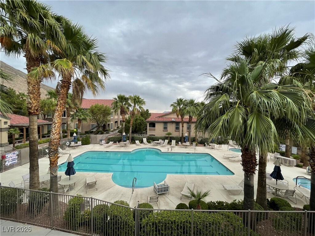 SUPER CLEAN, FULLY FURNISHED-READY FOR MOVE WITH A BALCONY THAT OVERLOOKS THE POOL & SPA AREAS. ALL FURNISHINGS, DECORATOR WALL HANGINGS, LINENS AND DISHES ARE INCLUDED- RARE ONE CAR GARAGE ALSO INCLUDED-THIS UNIT HAS BEEN HARDLY USED BY OWNER. EASY ACCESS TO 215 FREEWAY AT CHEYENNE-CLOSE TO SHOPPING, RESTAURANTS.