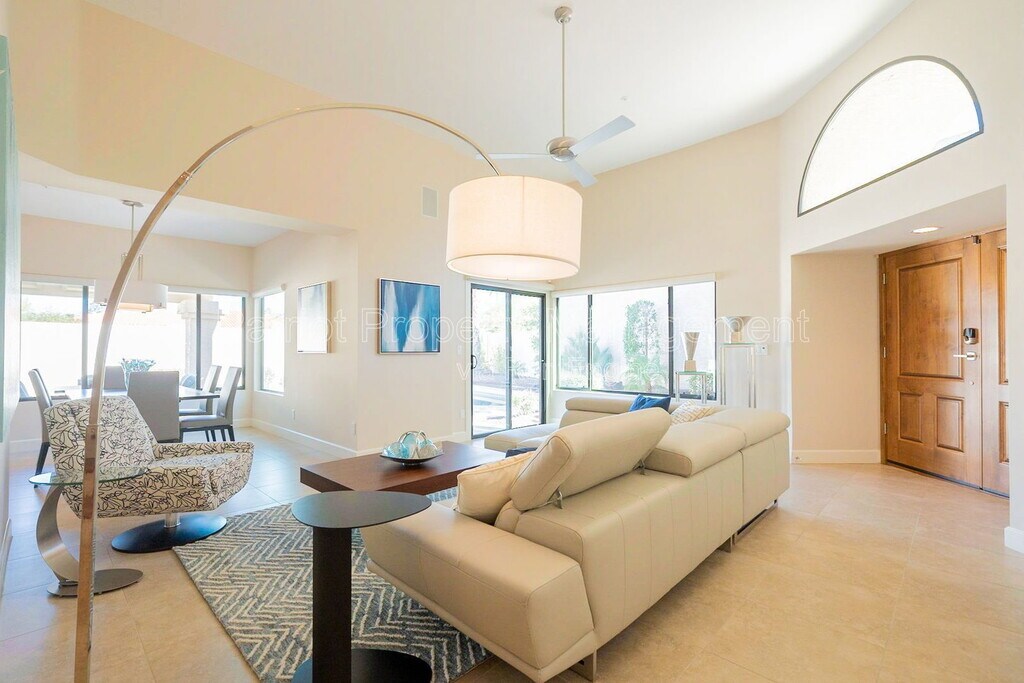 FURNISHED RENTAL. Located in the coveted, gated community of Suntree East in the heart of Scottsdale Ranch. The home has been professionally updated by a designer. Large master suite with private balcony, large walk in closet and luxurious master bath. 2nd bedroom and bath and den located on first level. Open kitchen to great room. Private backyard with sparkling pebbletec pool & water feature. Suntree East offers a community heated pool and spa. Scottsdale Ranch offers parks, tennis, pickleball, boating, walking & biking paths, senior center and golf. 90 DAY MINIMUM. $100 UTILITY CAP FOR ELECTRIC/WATER/GARBAGE. $4100 JUNE TO AUG. $4500 SEPTEMBER, OCTOBER AND MAY. $4900 NOV TO APR. $250 UTILITY CAP. ALSO AVAIL FOR ANNUAL RENTAL (WITHOUT UTILITIES) $4500/MONTHLY ON ANNUAL LEASE. TENANT AGREES TO NO SMOKING, NO USE OF INTERIOR FIREPLACE. By submitting your information on this page you consent to being contacted by the Property Manager and RentEngine via SMS, phone, or email.
