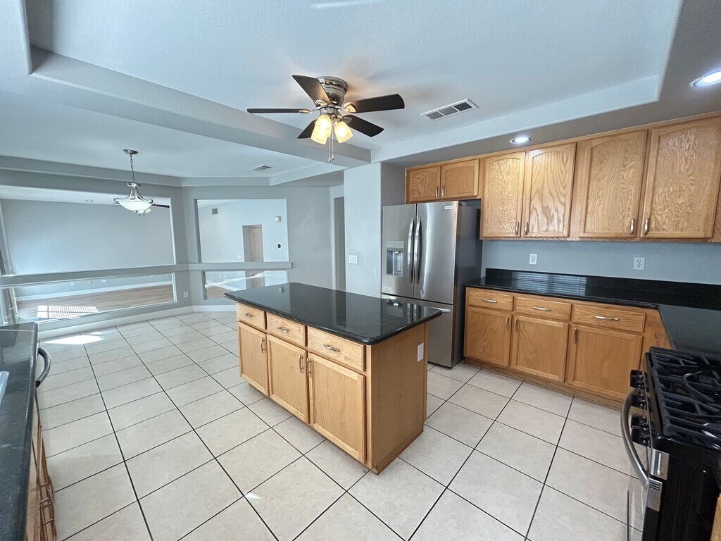 Desirable Silverado Ranch home features over 3,000sq feet of living space with 5 bedrooms and 3 bathrooms! This unique floor plan offers 1 bedroom and bathroom on the first floor plus a large loft on the second floor! Recently installed luxury vinyl plank flooring throughout compliments with tile flooring, no carpet! Large kitchen features granite countertops, new stainless steel appliances, and kitchen island with ample space for storage! The backyard boasts a sparkling blue pool with plenty of additional space for relaxation! 3-car attached garage offers tons of storage. Ideal location near plenty of shopping, dinning and just minutes from I-15 access! (Rent price includes weekly pool service, sewer and trash utilities.) All applications must be submitted online at Application fee $30 per adult non-refundable. Any incomplete applications may be rejected. All applications are subject to credit history, income verification and rental history. Approved applicant to pay $150 non-refundable lease prep fee.