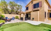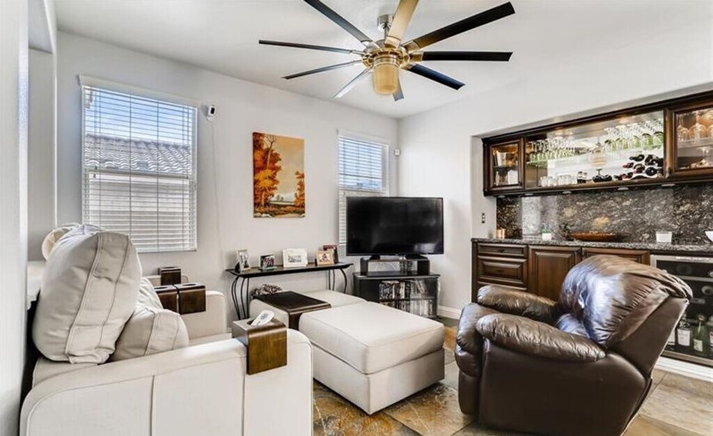 Rent the dream in beautiful Summerlin! This home has been highly upgraded with granite countertops, with a remodeled chef's eat-in kitchen with the newer appliance. The living area has a built-in bar area with a wine fridge. These unique floor slate tiles & wooden flooring are throughout this home, with modern ceiling fans! With 3 bedrooms, 1 primary bedroom with a spacious romantic bathroom and a walk-in closet, 3 remodeled bathrooms, an office, and 3 car garages with one of the garage sides having a room built in which makes it a 2 car garage. You'll also be able to enjoy a very private, landscaped backyard as well, ideal for entering. It is close to school, shopping and 215, etc. This home is MOVE-IN ready! Hurry this won’t last, Call me today to see it.
