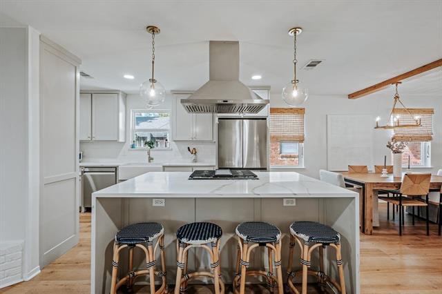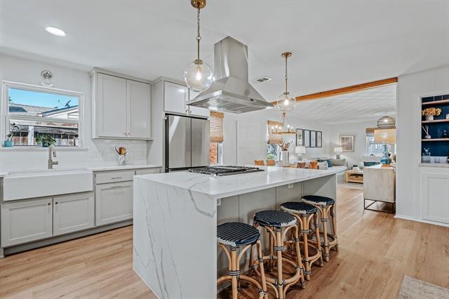 Say hello to 10642 Mapleridge Drive, a tastefully reimagined sanctuary in the heart of Lake Highlands. This sophisticated 4 bed, 2 bath home offers a perfect blend of modern updates and timeless charm, featuring a comprehensive renovation that leaves no detail untouched. Roof and foundation 2021. Step inside to discover a spacious and inviting layout that seamlessly connects the living spaces, ideal for both entertaining and everyday living. The home boasts updated systems throughout, ensuring peace of mind. The tastefully redesigned kitchen serves as the heart of the home, expertly appointed with high-end finishes, appliances, and stunning waterfall quartz countertop. Retreat each offering a serene escape with ample natural light and storage. The modern bathrooms are meticulously crafted to accommodate double sinks, shower and tub and walk-in closet. On one of LH sweetest streets, this beautifully updated home is ready to welcome you!