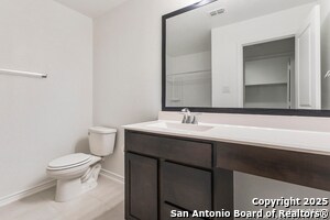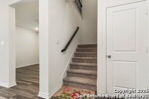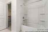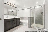 Step into modern comfort and smart upgrades in this stunning two-story home, built in 2024 and still under builder's warranty-meaning peace of mind for years to come. Soaring 9-ft. ceilings create an open, airy atmosphere, perfectly complemented by vinyl plank flooring for durability and style, and Generation Lighting fixtures that brighten every room with elegance. The kitchen is a chef's dream, ideal for both everyday living and entertaining. Enjoy a full suite of Whirlpool stainless steel appliances (dishwasher, electric stove, oven, countertop microwave, hood), a massive Samsung 28 cu. ft. side-by-side refrigerator, a built-in 3-level water purifier, quartz backsplash, an extended breakfast bar, and abundant cabinet storage with a walk-in pantry-making meal prep, hosting, and storage effortless. The living area is flooded with natural light, perfect for cozy family nights or hosting friends. A ceiling fan keeps the space comfortable, and a pre-mounted TV wall mount adds instant convenience for entertainment. The primary suite upstairs is your personal retreat, featuring a walk-in closet, framed mirrors, and a luxurious bath. Relax in the spa-inspired primary bath, complete with an extended cabinet offering kneespace and a 42-in. garden tub/shower with Emser tile surround, combining style and functionality for a spa-like experience every day. All bathrooms feature tile flooring, framed mirrors, and extra cabinetry for organized, stylish storage. Washer and dryer are included, simplifying your move-in process. Walls throughout the home are insulated for energy efficiency, keeping utility costs low, while smart additions like sensor pipes, an exhaust fan, and a soft water loop enhance safety, comfort, and convenience. Step outside to your private backyard oasis: a 10x12ft cement patio ideal for BBQs, family gatherings, or relaxing under the Texas sky. The yard is beautifully landscaped and includes a dedicated vegetable garden bed and fruit trees (plantain, apple, and lemon), perfect for fresh, homegrown produce. For peace of mind and modern security, this home comes equipped with 360-degree cameras covering the driveway and backyard, a Ring doorbell with camera at the front door, and a garage camera, keeping your family and property safe and secure at all times. Additional lifestyle upgrades include blinds throughout, ceiling fans in the hall and master bedroom, garage lighting, hand rails for safety, and furniture such as a king-size bed frame-all designed to make daily living effortless and comfortable. Located in the highly sought-after Cove at Westover Hills, this gated community offers security, peace of mind, and additional car parking space. Convenience is unmatched, with easy access to major roadways like Loop 1604, Highway 151, and Loop 410, ensuring stress-free commutes. Outdoor enthusiasts will love the proximity to SeaWorld San Antonio and Government Canyon State Natural Area, perfect for hiking, biking, camping, and wildlife observation. This home seamlessly blends modern convenience with lifestyle living, making it a place you'll love to call home. What's Special: Vinyl plank flooring 10x12ft backyard cement flooring Backyard with vegetable garden bed + fruit trees (plantain, apple, lemon) Carrara style entry door Blinds included throughout the home All Appliances included Generation lighting fixtures Ceiling fans in the hall & master bedroom TV wall mount included Garage opener/light included Hand rails for safety & style Gated community with additional car parking space Builder's warranty available 360 degree Security camera Insulated walls