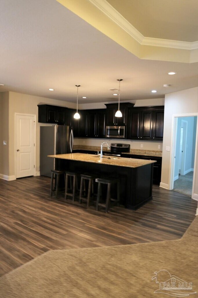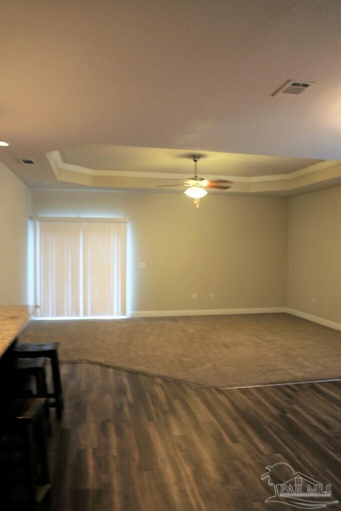 Beautiful four bedroom home near NAS & Corry! Open floor plan. Great room with ceiling fan & boxed ceiling. Dining room open to kitchen & great room. Fully equipped kitchen with large island/breakfast bar,granite countertops,stainless steel appliances & pantry. Split master suite located downstairs & features a ceiling fan,double vanity,garden tub,separate shower & large walk-in closet. There is another guest bedroom & bath located downstairs. Large inside laundry room with washer & dryer -- washer & dryer are "as is" - no warranty. Two car garage. Open patio. Small pets considered with owner approval. No smokers.