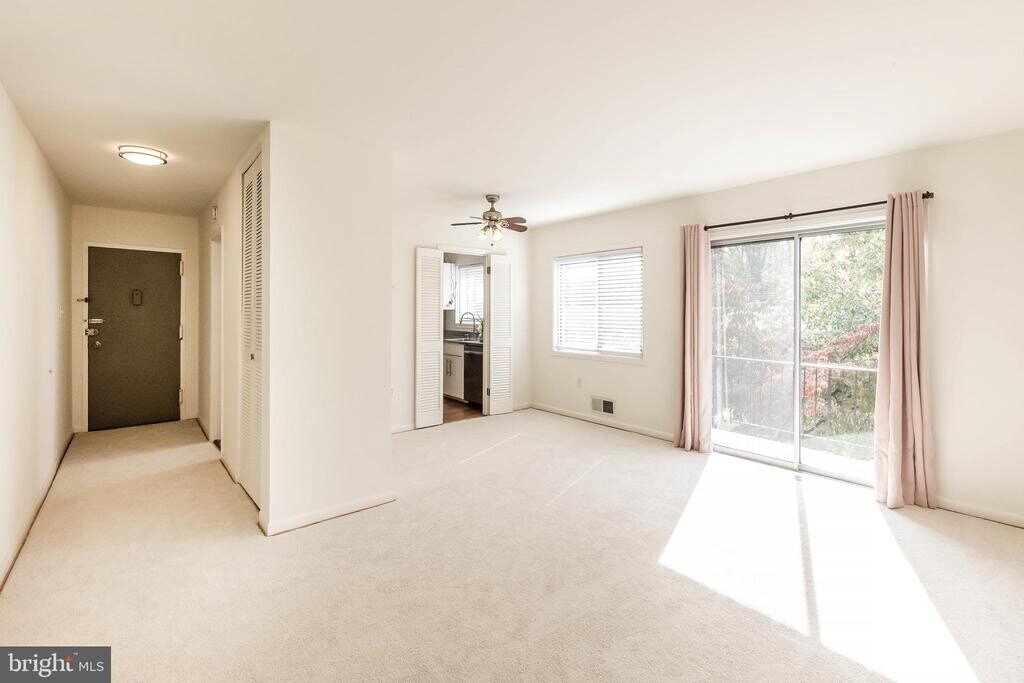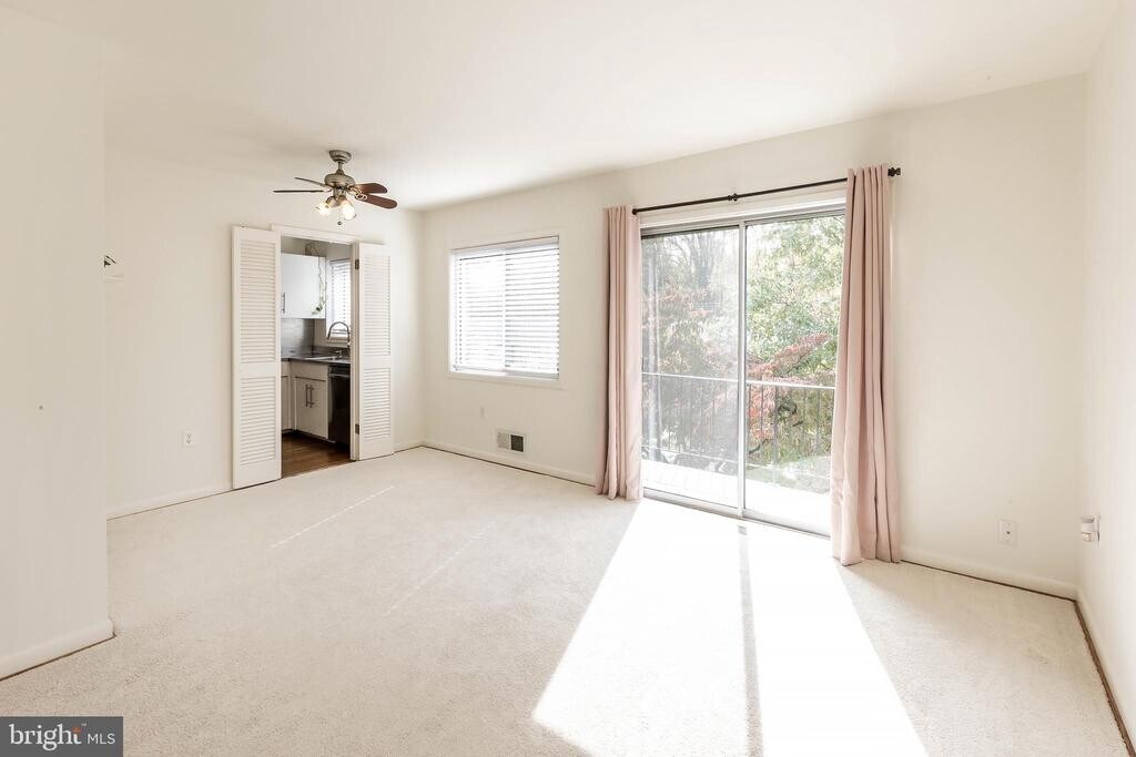 Sunny, Light filled TOP Floor unit with Balcony! New sliding glass door and new windows and new window blinds 2025. Fresh paint all over and Brand new carpet. Newer Stove and dish washer from 2024. Overlooking dogwood and oak trees from the windows. Primary bedroom has 2 closets - 1 walk-in + a regular closet, 2 windows with 2 exposures. Walk to Metro or Marc station in Garrett Park. Parkside is one of the best values in Bethesda! The low fee includes all utilities, amenities, parking and storage. Surrounded by park. Close to the Beltway and i270. Near NIH and Water Reed Bethesda Medical.