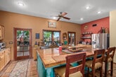 Available Arpil to Nov Jan rent is 6000 Feb 7000 March 7000 This is a furnished home. Amazing Mountain views of Superstition 1 acre lot. This 3 Bedrooms,2 Bathroom,Adobe home with Saltillo floors open floor The living area looks out to superstition mountains. Huge Butcher Block island any chef would love,eat in kitchen with views,Copper sink,Stainless Steel Appliances,Real Fireplace. Great front and back porch. back yard is fenced pets welcome. More... Large Master Bedroom,king size bed,TV,huge walk in Shower,Mexican vanity with bowl sink. Split floor plan for privacy 2nd Bedroom has Queen Bed and 3rd has 2 double