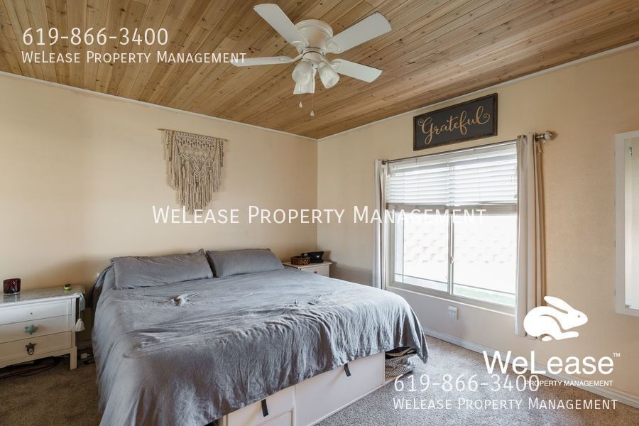Welcome to Trigal Way! Beautiful and spacious 3bed – 2bath + 2 car garage home in Santee. This amazing home features vinyl plank flooring, carpets in the bedrooms, a beautiful chimney fireplace in the living room. In the kitchen you have granite countertops, stainless steel appliances and wooden kitchen cabinets. In the backyard you will find a covered patio, a barbeque and a built-in island, you can also have some rest and good memories by the raised fire pit. Backyard includes a permanently installed playground. Home has solar. Additional parking in driveway. Home has A/C and storage shed in the back. Professionally managed by WeLease. Schedule a showing and to apply at OR call DEPOSIT: 1 month’s rent APPLIANCES: refrigerator, stove, microwave, dishwasher, garbage disposal. AIR CONDITIONING: Yes UTILITIES INCLUDED: None all tenants responsibility. SOLAR: Home has solar! Savings on electricity. PET RESTRICTIONS: Pet rent is $35 per pet If you are applying with an emotional support animal or service animal, please provide the corresponding documentation. AVAILABLE: Now Professionally managed by WeLease. | RENTAL CRITERIA -Strong Credit Score -Collective household income 2.5 times the monthly rent -No prior evictions. -No balance owing past or present to: Utility company, property manager. -No excessive late payments to previous landlord or on credit report. -No recent criminal activity within the past 6 years. -Security Deposit is required to be paid in full within 24 hours of receiving approval notification. -You must be willing to start lease within 14 days of property being available. - Co-signers & Guarantors must meet the same income requirements with no prior negative payment history and have a cre dit score in excess of 700. MUST SUBMIT DOCUMENTS WITH APPLICATION: 1. Each applicant must submit the online application and pay the $55 non-refundable application fee. Complete all fields in application. 2. Copy of current government issued ID. 3. Proof of verifiable income for each applicant. (NO screenshots accepted) - If employed, copy of last 2 paycheck stubs containing year-to-date info. - If starting job, a copy of your employment agreement/offer letter - If self-employed, copy of prior two years tax returns and business bank statement for the previous 3 months (each document must include all pages). - If retired, proof of retirement income such as social security, disability, liquid assets, personal savings/bank account, or stocks. Copy of last 3 months of bank statements. 4. 2 years of rental history for each applicant. Must provide contact information, including phone number and email for landlord. 5. Pets photos of all pets/animals. Property may require a pet rent or deposit. ESA/Service animals: must submit supporting documentation. START LEASE & MOVE-IN PROCESS Resident is responsible for $100 lease preparation and move-in, this fee must be paid prior to resident move-in date. RESIDENT BENEFITS PROGRAM The Resident Benefit Program is designed to provide convenience to our residents by providing several services and liability protections which satisfies the renters insurance requirement, plus additional benefits. The tenant will be billed $39.00 monthly for the Resident Benefits program. Coverage and Benefits: All tenants are required by their lease to carry property damage liability coverage. This program satisfies the renters insurance requirement. Residents receive the benefits of the coverage without additional applications, credit checks, or billing *False information on an application is cause for immediate denial, and grounds for tenant termination if a lease has been executed. *Federal & California Fair Housing Laws are observed by WeLease. 2 Car Garage Covered Patio Firepit Large Driveway None All Tenant's Responsibility Outdoor Bbq Tool Shed (In Backyard) Wood Burning Fireplace