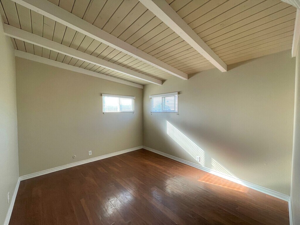 Amazing location in the heart of Pierpont Beach! This 2 Bedroom 1.75 Bath upstairs Duplex with additional Den has a huge living area featuring laminate wood flooring, beautiful painted wood beam ceilings and custom paint colors. Your kitchen has open sight lines to the living area, with white cabinetry and tile countertops and a gas stove, dishwasher and refrigerator provided. The laminate wood flooring flows through both bedrooms and large den, which is perfect to be used as a home office or family room. Enjoy having a private deck, perfect to be used on those beach summer nights! This property has great parking, with a shared garage featuring overhead storage and room to park an additional vehicle on the oversized driveway. A shared washer/dryer is provided onsite. Water services included in your rent. Don't miss out on this amazing location! Located just one block from Seaward Ave, you are in the heart of Pierpont Beach in walking distance to the sand and amenities such as multiple restaurants and bars, shopping, coffee shop and yogurt shop! Lease Terms: One-Year Lease Required Sorry, this is a no pets property CALIFORNIA OAKS APPLICATION PROCESS: Every adult must submit a separate application. There is a $40.00 application fee per applicant. Applicants combined income requirement is 2.5 times the monthly rent. Applications will be screened in the order they are received. The average credit score of all adult occupants must be at least 650 combined. The combined total of all collection account for all adult occupants must be less than $500. Collection account for utilities (e.g., electric, gas, water, internet, cell phones, etc.) will result in automatic denial, regardless of total amount. Medical and student loan collections are excluded from the total and will not be considered in the $500 limit, however, applicants must still meet the average credit score requirement. Application fees are non-refundable once an application has been screened. It takes approximately 3 business days to process an application. All tenants must provide proof of renters insurance (minimum $100,000 liability) prior to their move-in. To submit an application and see our full application guidelines, please visit us at California Oaks Property Management Lic# 01220992