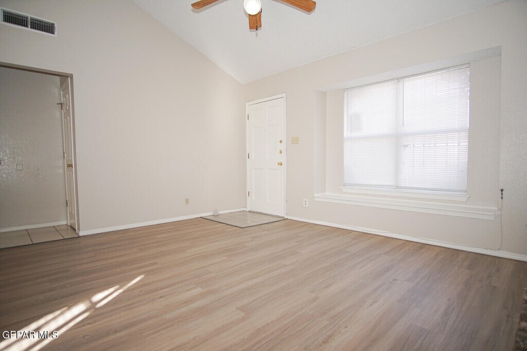 This cozy 2-bedroom home is located in the Northeast side of town near Dyer. Right as you walk-in there is a nice living area with vaulted ceilings,a large window that overlooks the front yard,a ceiling fan for added comfort,and a fireplace! Dining area is open to the living and kitchen areas,the dining area has access to the backyard through french doors. Galley style kitchen comes with all appliances. Down the hallway you will find access to your single car garage,a guest bedroom with walk-in closet,the full-size bathroom,and the primary bedroom. The primary bedroom has vaulted ceilings,a walk-in closet and access to the bathroom. Backyard is large and has a small patio area. Please verify schools. We can only work with a two week move in time frame/hold period. Rental price includes enrollment in a residence benefits packaging of $30 a month. To schedule a showing please see Confidential Remarks.