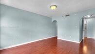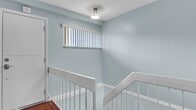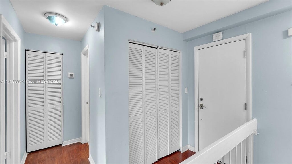 Welcome to your new home in the secure, gated community of Prado Condominiums! This spacious two-story condo offers a bright, open feel with wood floors flowing throughout. The main level features a comfortable living room, a half bath, an updated kitchen, and a dining area that opens to a private balcony with accordion shutters. Upstairs, you'll find two generous bedrooms. The master suite is a true retreat with a private en-suite bathroom and a walk-in closet. The second bedroom is also spacious and has plenty of closet space. Large impact windows on the second floor fill the space with natural light. This is a perfect home for a low-maintenance lifestyle, with excellent amenities and quick access to the Shula Expressway, Miami Dade College, and a variety of local restaurants and shops.