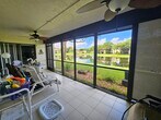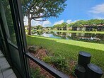 Available Jan 1st in the gated 55+ community of Palm Chase. This beautiful 2 bed, 2 bath condo is incredibly spacious and offers an oversized screened-in patio with breathtaking views of the lake. There's ample living space with a large living room, separate open den/office, dining room and an eat-in kitchen. The master bedroom features a walk-in closet, a standard closet, and an en-suite bathroom with a walk-in shower. The entire unit has newer luxury vinyl flooring throughout and newer stainless steel appliances. There's a full washer and dryer located inside the unit as well and a newer A/C. Water and basic cable included. No pets per association - ESA and service animals are welcomed.