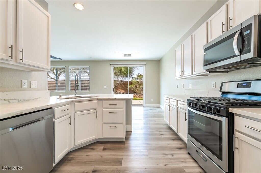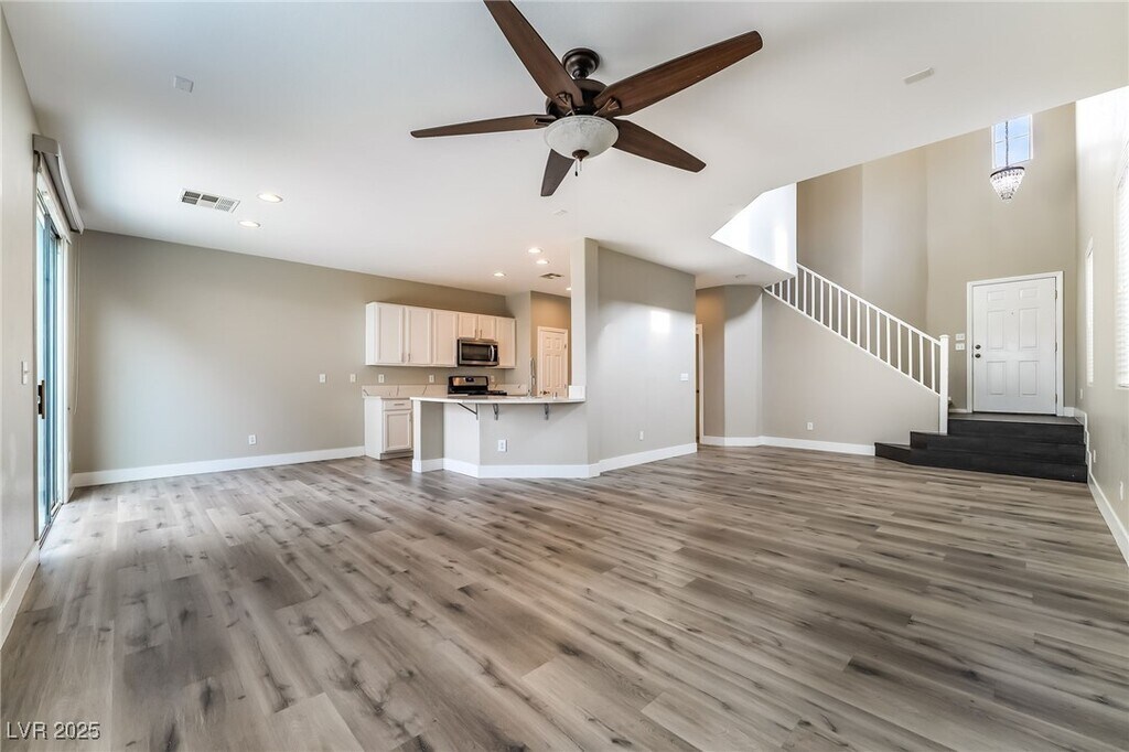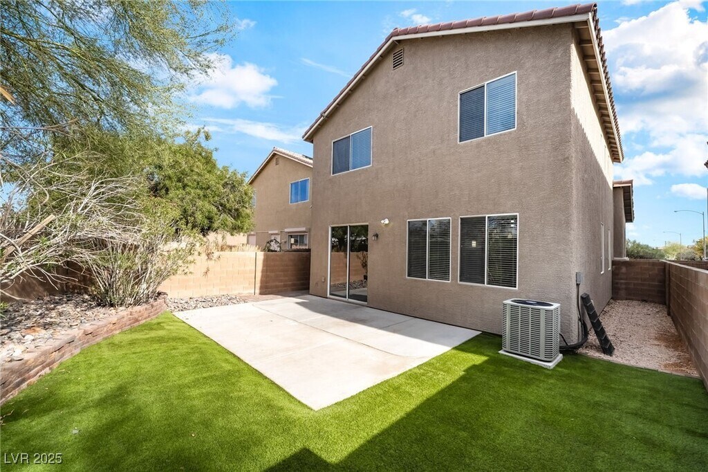This beautifully remodeled two-story home features 3 bedrooms, 2.5 bathrooms, and an inviting open living area with upgraded wood-tile flooring and a ceiling fan. The spacious kitchen offers white cabinetry, marble countertops, and stainless steel appliances, while the upstairs layout includes all bedrooms plus a versatile loft. A washer and dryer are included for added convenience. Enjoy a fully landscaped backyard with a patio and turf—perfect for outdoor relaxation. Ideally situated between Southern Highlands and Mountains Edge, just off Cactus, this home offers comfort, style, and an excellent location.