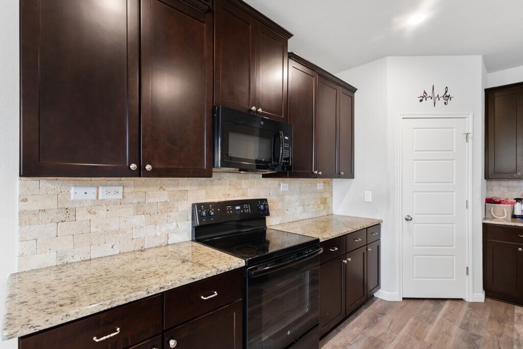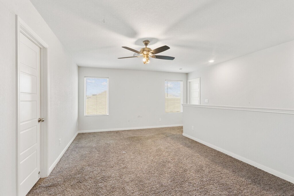 Welcome home to this spacious two-story gem in the desirable Paloma subdivision, offering 4 bedrooms and 2.5 baths. A formal dining room with built-in shelving and wood laminate flooring sets the tone as you enter, while the inviting living room brings in plenty of natural light and features wood laminate flooring and a ceiling fan for everyday comfort. The open kitchen is designed for both cooking and gathering, complete with a center island, black appliances including the refrigerator, ample cabinet space, and granite countertops that flow right into the living area. Upstairs, a versatile game room offers the perfect spot for movie nights or play space. The primary suite is a relaxing retreat with high ceilings, carpet and a ceiling fan, while the ensuite bath includes a double vanity, oversized walk-in shower, and a spacious walk-in closet with shelving. Step outside to a covered patio and privacy-fenced backyard, ideal for entertaining or unwinding. Conveniently located near major highways, Randolph Air Force Base, shopping, and dining. Lawn care provided for one year!!