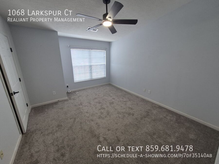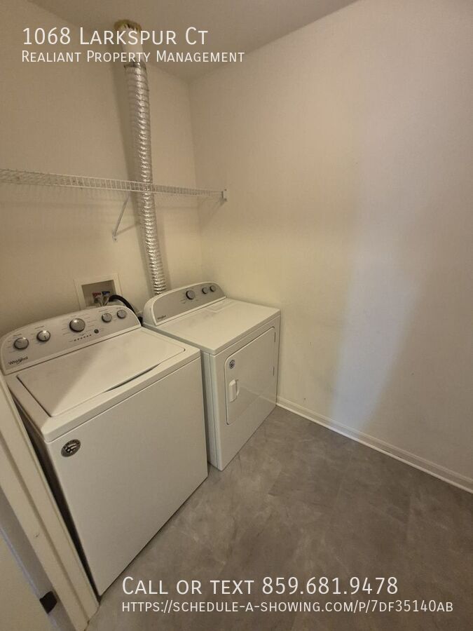 Welcome to 1068 Larkspur Ct, Florence, KY 41042, located in the desirable Meadows at Farm View community. This beautifully maintained 3rd-floor condo offers 1,242 sq ft of comfortable living space, modern updates, and peaceful surroundings. Interior Features: 2 bedrooms, 2 full bathrooms, plus a versatile office/den that can serve as an additional bedroom Bright and open layout with a cozy gas fireplace Private balcony with a beautiful, serene view Washer and dryer included- however tenant's responsibility for maintenance Fresh interior paint and new flooring installed throughout within the past two years All door handles, hinges, and front door locks have been recently updated Community Amenities: Pool, clubhouse, and fitness center On-street parking (no garage) Location Highlights: South Fork Park is conveniently close by and offers a children’s playground, sand volleyball, basketball court, creek access, frisbee golf, scenic nature trails, and more Close to shopping, recreation, and provides easy freeway access This beautiful top-floor condo offers comfort, convenience, and attractive upgrades throughout—ready for you to move in and enjoy! All interested applicants over the age of 18 must complete a rental application and authorize a $65 credit and background check. A minimum credit score of 600 is required. No pets allowed. Schedule your showing today at Rentals--Northern, Ky. *Beware of Scams! We will never ask you to send money via Venmo, CashApp, PayPal, Zelle, or any other peer-to-peer payment app. All payments are handled securely through our verified platforms. We DO NOT ACCEPT CASH.*