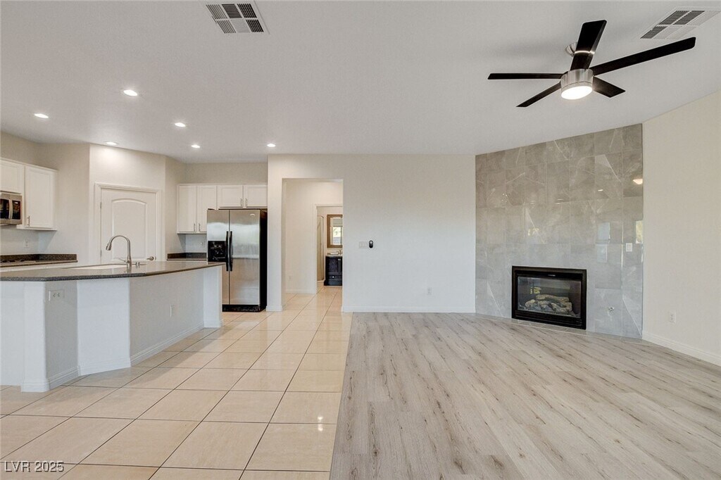 HARD TO FIND 5 BEDROOM HENDERSON HOME WITH SEPARATE CASITA AND STRIP VIEWS FROM MASTER BEDROOM BALCONY* OVER-SIZED GAMEROOM/LOFT UPSTAIRS OFF OF TWO BEDROOMS AND BATH* M/M WOOD FLOORS THROUGHOUT* STAINLESS STEEL APPLIANCES IN ISLAND KITCHEN WITH BREAKFAST BAR AND CORIAN COUNTERS* CUSTOM TILE SURROUND ON FAMILY ROOM FIREPLACE* BED/BATH DOWNSTAIRS* ALL APPLIANCES INCLUDED* NO CARPET THROUGHOUT* CEILING FANS AND RECESSED CAN LIGHTING THROUGHOUT* COVERED PATIO WITH ARTIFICIAL GRASS AND DESERT LANDSCAPING IN REAR YARD* GATED COMMUNITY WITH EASY FREEWAY ACCESS TO 215*