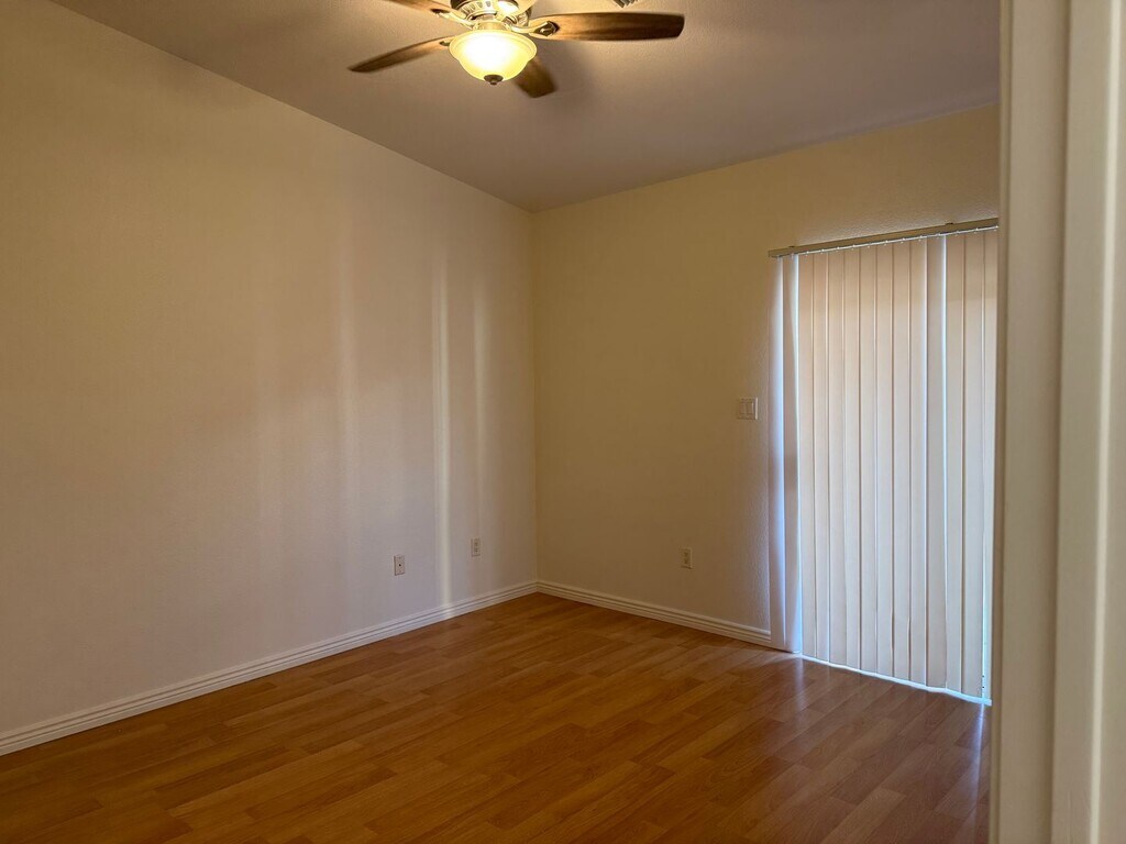Updated, well-maintained 3-bedroom, 2-bath townhome with a 2-car garage in desirable Yuma Meadows Villas. Open, split floor plan featuring freshly painted interior, wood-laminate flooring throughout—no carpet. Spacious kitchen offers a breakfast bar, extra cabinetry, and includes refrigerator. Home highlights include vaulted ceilings, skylights, and a cozy corner fireplace. The primary bedroom features a walk-in closet and sliding glass door opening to a private rear patio. Enjoy use of the community pool for those warm summer days.