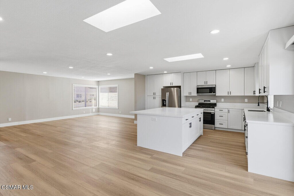 Come see this fully renovated, single story home on a quite street in Simi Valley. The lucky tenant will enjoy the brand new kitchen with custom cabinets, quartz counter-tops, and stainless steel appliances. The bathrooms have been renovated as well with custom vanities and tile. Luxury vinyl flooring throughout - no carpet. The generous patio comes complete with a gas fire table - great for entertaining. There is no garage, but there is a large storage shed and plenty of room for two cars in the driveway.