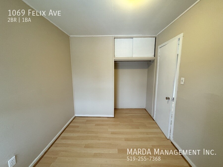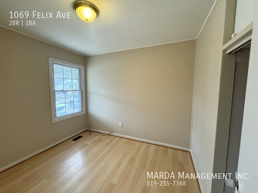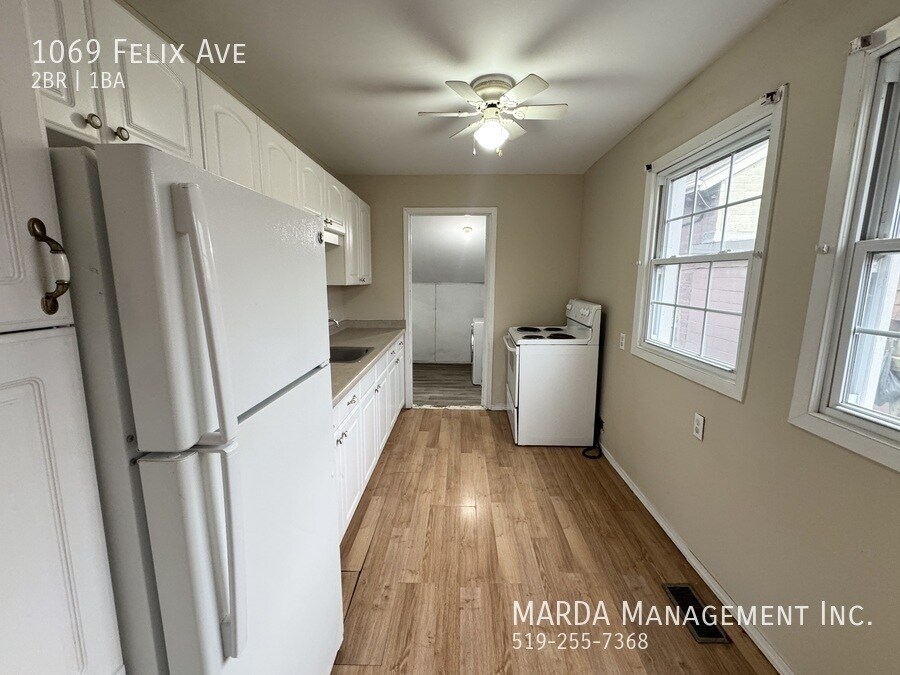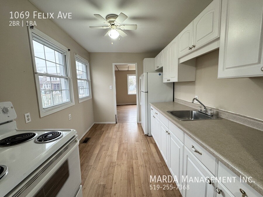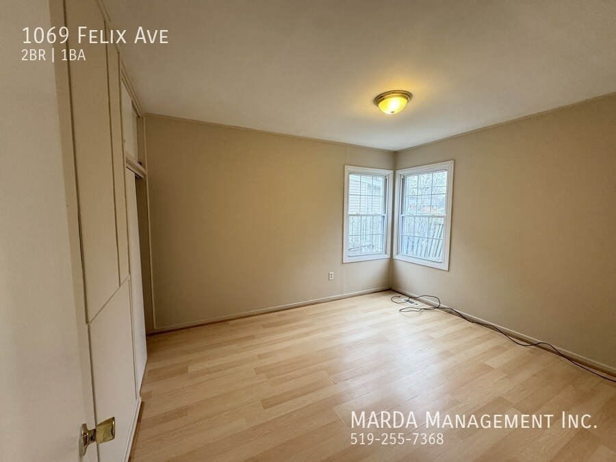 Welcome to 1069 Felix. This cozy bungalow offers 2 bedrooms and 1 bathroom in a convenient west-end location. Inside, youll find laminate flooring throughout, a bright living space, and a cozy kitchen with lots of cabinetry. Both bedrooms are a comfortable size with ample storage. A rear mudroom with laundry hook-ups leads to a large, fully fenced backyard complete with a storage shedperfect for outdoor living and keeping things organized. Situated on Felix just off Girardot, you're close to schools, parks, retail, and transit. Tenant responsible for hydro, water gas, snow removal and lawn care. First and last months rent and a credit check are required. One-year minimum lease. Professionally managed by MARDA Management, offering 24/7 maintenance support with live agents and easy rent payment options. Call MARDA MANAGEMENT today at or email to schedule your viewing! Driveway Parking Fenced Back Yard Freshly Painted Laminate Flooring Laundry Hookups No Smoking Allowed Pet Friendly Washer/Dryer Hookups Available