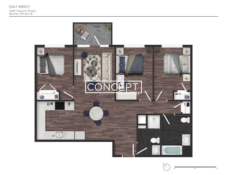 There is currently a 3 Bed 2 Bath Condo for rent with 1,000 sq ft listed at 1069 Tremont St. It is Available September 1, 2026.