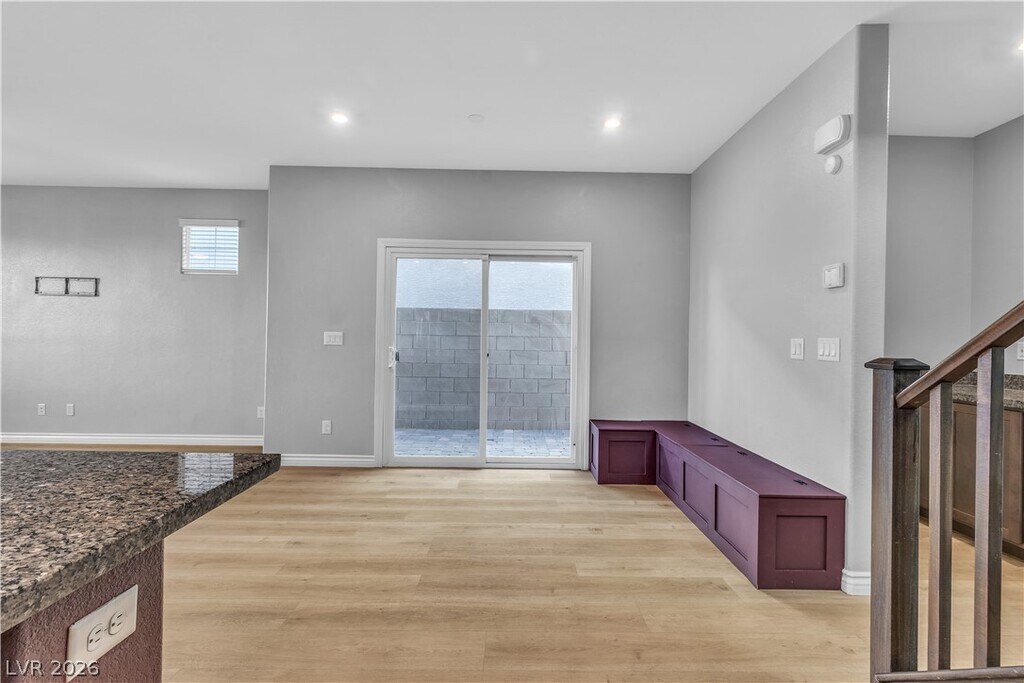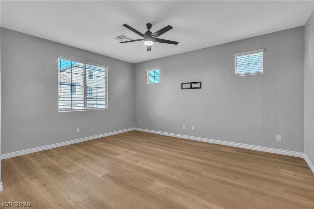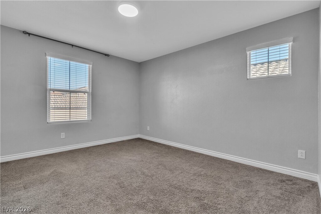For Rent By Owner! Charming Skye Canyon Alley-Load Home! Sitting on top of an elevated lot with the garage located at the back of the home & no neighbors to the side, this rare find offers plenty of privacy. Built in 2021 w/many upgrades including new interior paint, 4 baseboards & shelving added to the laundry room. Downstairs an open floor plan awaits w/premium neutral-toned luxury plank flooring. The kitchen is the downstairs centerpiece w/custom backsplash, 42" cabinetry w/crown molding trim, SS appliances w/upgraded range hood, a large island w/granite countertops & a pantry. Upstairs a large loft separates the primary bedroom from the other 2 bedrooms. The primary bedroom offers a walk-in closet & ensuite bathroom w/large linen closet, dual sinks, shower & bathtub. Bedroom 2 is spacious w/large walk-in closet. Large guest bath w/dual sinks."