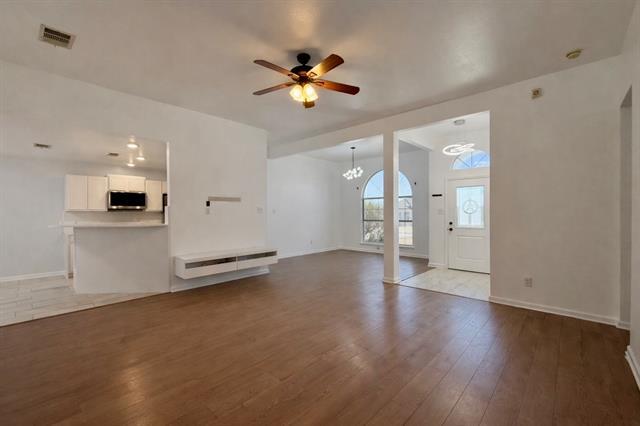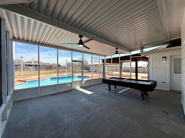 Beautiful 3-bedroom, 2-bath home in Fate with an open floor plan and no carpet throughout. The split-bedroom layout offers privacy, while the spacious kitchen features a brand-new smart refrigerator and plenty of room for entertaining. Washer and dryer are included for added convenience. Enjoy outdoor living with a huge backyard and large swimming pool. A covered patio provides the perfect space for relaxing or hosting guests. The property also includes a pool room with a pool table, making it ideal for entertaining year-round. Additional features include a 2-car garage, an electric gate providing access to the backyard, and a large barn with covered parking, perfect for boats, additional vehicles, or storage. This beautiful home offers space, functionality, and great amenities both inside and out.