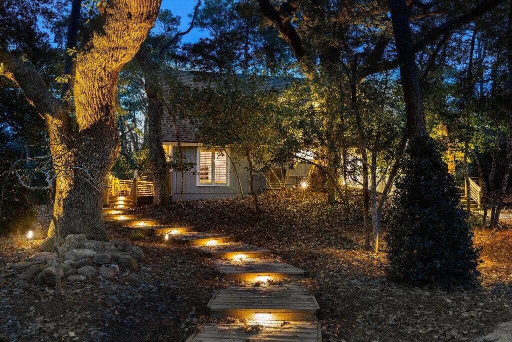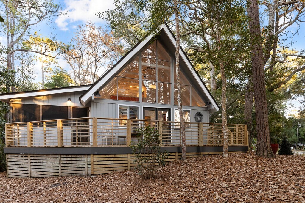 Nightly rental rate with 3 nights minimum. Hosted on AirBnB also. Stylish A-frame home offers a serene setting under the trees in Pine Knoll Shores. Available for short term lease, this home features one downstairs bedroom and upstairs loft, screen porch, multiple decks and short walk or bike ride to private sound and ocean access.