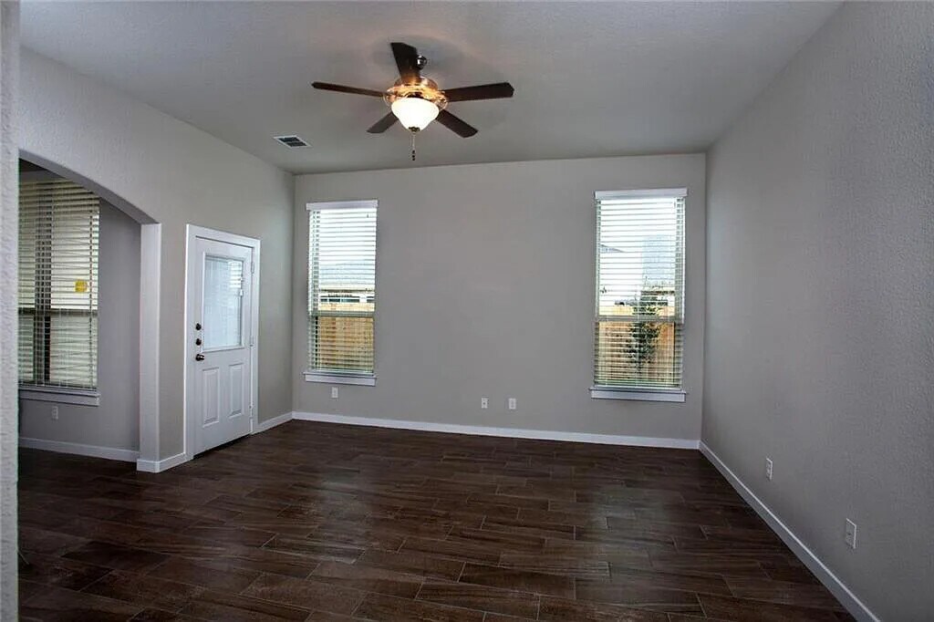 (New carpet) Beautiful 3 Bedroom Luxury Townhome Located in Kyle, Texas! 3 Bedroom Luxury Townhome located in the Villas at Creekside! High end features include granite kitchen countertops, tiled backsplash, recessed lighting in kitchen as well as pendant lighting over breakfast bar, deep undermount kitchen sink with pull out faucet, modern brushed nickel plumbing fixtures, 36" cabinets, upscale wood look plank tile flooring, upgraded carpet, tiled walk in master shower and game room. Covered patio and fenced backyard. Walk to Tobias Elementary School. APPLY ON-LINE TODAY! From IH 35, take FM Road 150/Center Street East. Follow 150 through several curves past Tobias Elementary. Turn left at Shell Station left onto Creekside Trail. Lakeview Circle will be on the left.