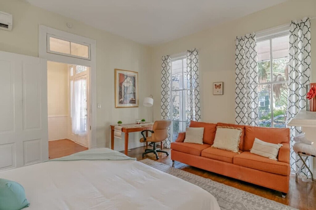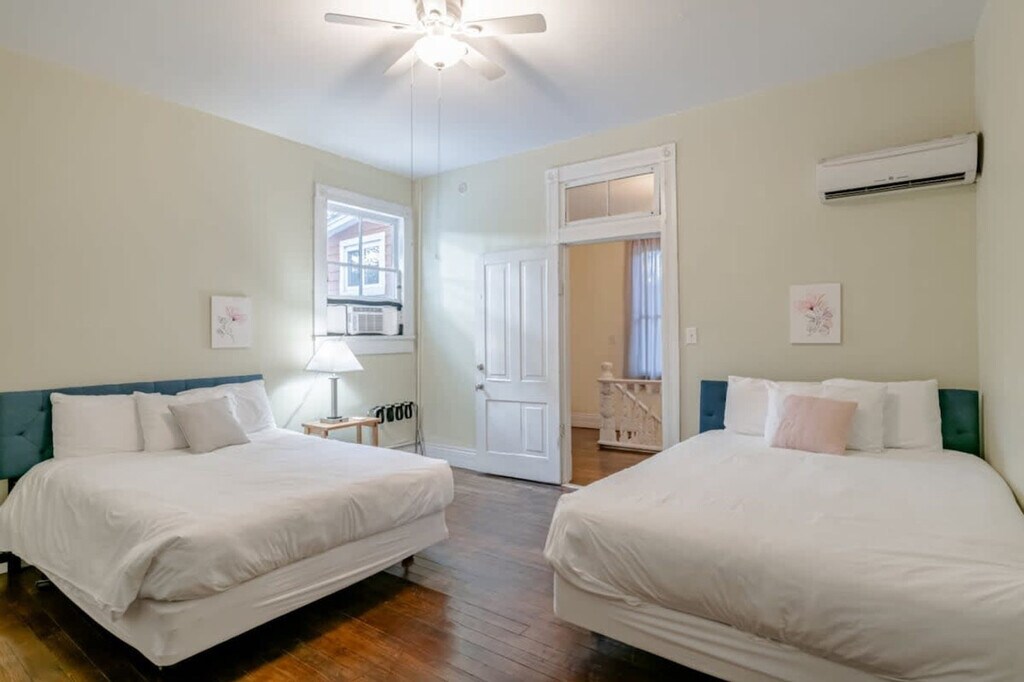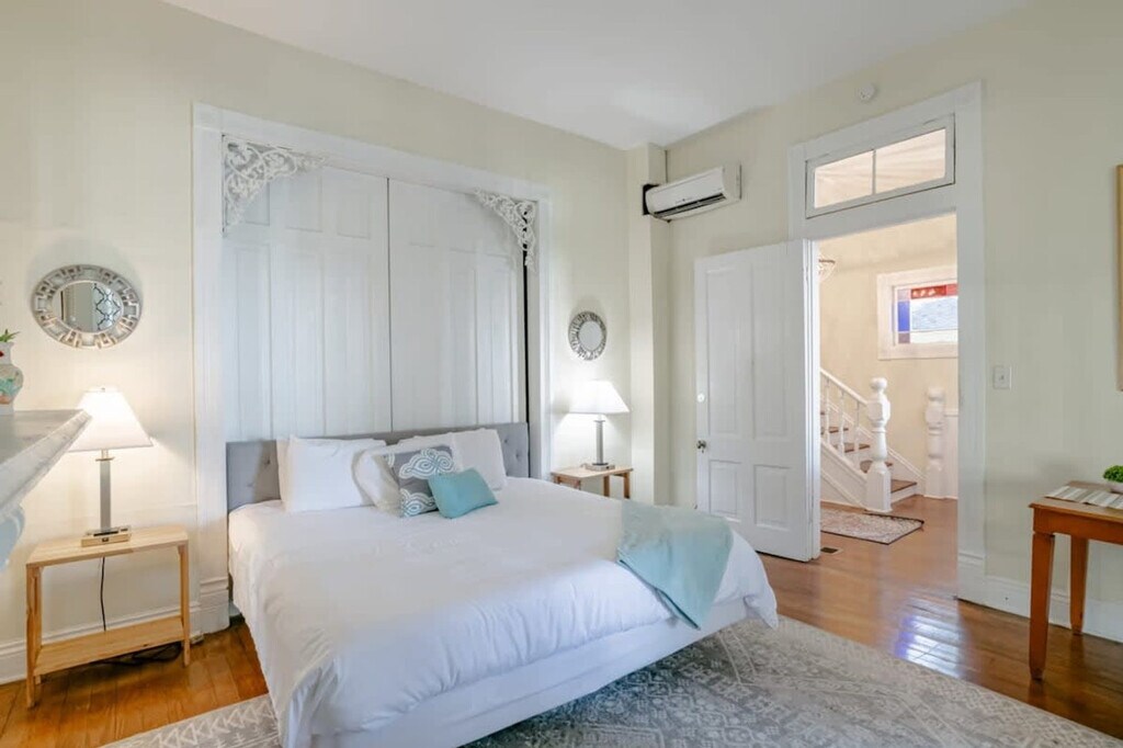This fully renovated 4-bedroom, 3.5-bathroom historic mansion is located on Michael Donald in the Old Dauphin Way Historic District, just minutes from downtown and entertainment. Designed for your comfort, this home offers all the practical amenities for a convenient stay in Mobile. With two master bedrooms, it's ideal for families, business professionals, or anyone seeking a cozy, genuine atmosphere. This fully remodeled historic home in Mobile, AL, features two bedrooms upstairs and two bedrooms downstairs, making it perfect for two families traveling together or large families. Upstairs includes a king bedroom with an en-suite full bathroom, a bedroom with two queen beds, and a bathroom with a shower. Downstairs offers another king bedroom with a futon, a back bedroom with two queen beds, and another full shower bathroom with a half bath. There is also a sleeper sofa in the living room. Pets are welcome with a fee of $50 per pet. A pack 'n play/travel crib is available upon request. Situated in a historic residential area off Michael Donald Ave in the Old Dauphin Way Historic District of Mobile, this location offers plenty of parking if you decide to drive yourself. Uber and Lyft are readily available in the area as well. Quiet hours are between 10 PM and 7 AM. A strict no parties rule is enforced, and if violated, the reservation will be canceled, and you will be required to leave the property immediately without a refund. Smoking is prohibited, and any signs of smoking will incur a $500 damage charge. Pets must be crated when left unattended and kept off furniture. You will be charged for any additional cleaning required due to pets. [SI]