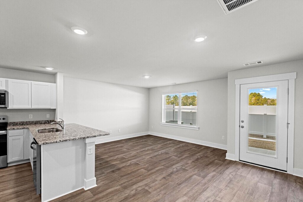 Welcome to this brand-new townhome just minutes from the beach and everything Surf City has to offer. Located in the desirable Waterside community, this thoughtfully designed two-story home combines comfort, style, and convenience. The main level features an open-concept layout ideal for everyday living and entertaining. The spacious kitchen overlooks the dining and living areas and is complete with granite countertops, stainless steel appliances, and ample cabinet and counter space. A single-car garage and private backyard with a privacy fence add both functionality and outdoor enjoyment. Upstairs, the primary suite includes a walk-in closet and an en-suite bathroom with double vanities. Two additional bedrooms, a full shared bathroom, and a conveniently located laundry room complete the second floor. You’ll also appreciate the generous closet space and additional storage throughout the home. Residents of Waterside enjoy access to exceptional community amenities, including a pool, tennis courts, pickleball courts, basketball court, fitness center, playground, and sidewalks throughout the neighborhood. We strive to provide an experience that is cost-effective and convenient. That’s why we provide a Resident Benefits Package (RBP) to address common headaches for our residents. Our program handles insurance, identity protection, pest control, air filter changes, utility set up, credit building, rent rewards, group rate internet, and more at a rate of $53.95/month or $68.95/month with pest control, plus $65.00 for group rate internet/month, added to every property as a required program. More details upon application. Most homes come with high speed internet up to 1 Gig at a special group rate, with premium support and setup to get you connected fast at move-in.