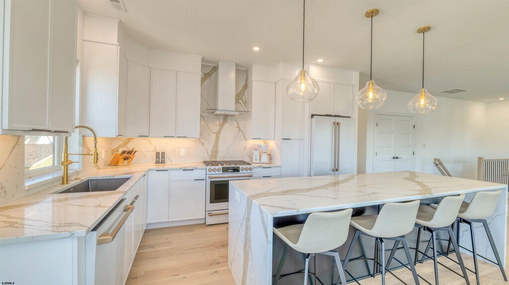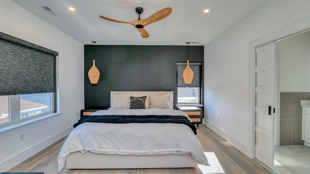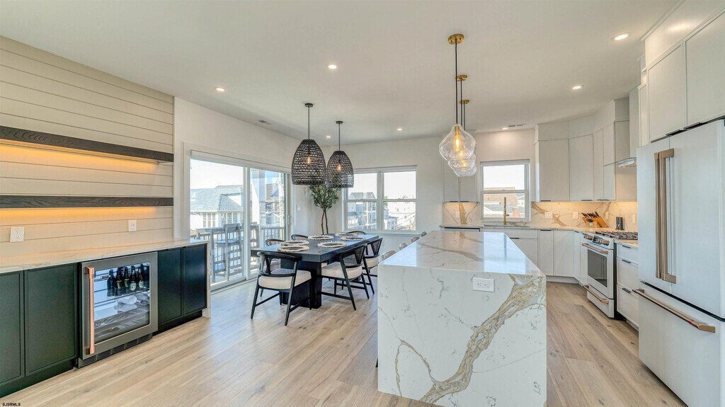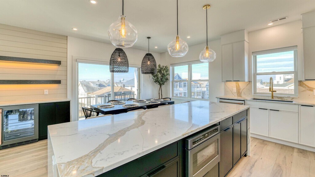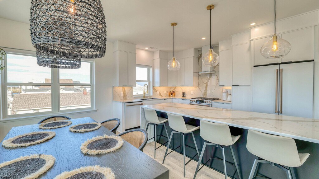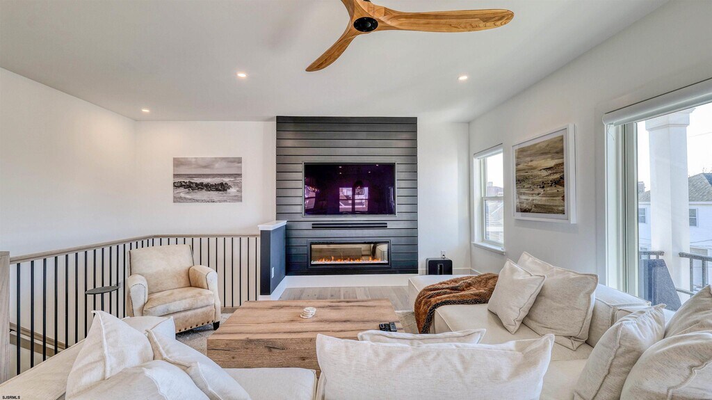First time offered! Brand-new construction summer rental available for July and August 2026. Spend your summer in this stunning 3-bedroom, 2-bath top-floor apartment featuring beautiful bay views and high-end coastal living. This bright and breezy unit offers an open-concept layout with a cozy fireplace, a spacious living room, a luxury kitchen with center island, and a dining area. A stylish contemporary bar leads out to the private balcony—perfect for taking in the fresh shore air and enjoying everything summer has to offer. The unit features three bedrooms including a private primary suite with a king-size bed. The other two bedrooms have queen-size beds. Additional highlights include a small fenced-in backyard and a large garage, ideal for storage, beach gear, and parking. The rental comes with four beach badges, four beach chairs, and four bikes for the ultimate experience. Small dogs up to 30 lbs with approval will be considered. Located on highly desirable New Haven Ave, you're close to one of Ventnor’s most popular beaches, plus great shopping, dining, and everything the shore has to offer. Be the first to enjoy summer in this brand-new gem!