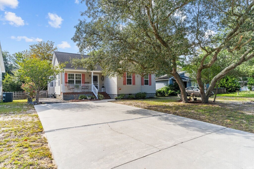 REMAINING DATES AVAILABLE 1/7-4/25 This sweet beach cottage is tucked among some of the prettiest mature woodlands on the island. Nestled between the Intracoastal Waterway and the Beach, Shoal Sisters is a perfect choice for a vacation that is not battered by ocean winds and sand, but quietly perched in a family neighborhood. A two-minute drive (or one-mile walk) will have you at the oceanfront in a flash. If you prefer to walk, we are just a few blocks from the beach walkover and the Oak Island Recreation Center! Our neighborhood is a jogger and dog walker’s dream: the well-marked walkway at SE 31st Street provides a town kayak launch for the Davis Canal and a great view of the center of the island, not accessible by car. This is our favorite area to catch a great sunrise/sunset around the marshlands and to check out a lot of waterbirds. There is a secondary walking path at SE 20th, so there is potential for a longer loop for the runners in your group! Lush landscaping and a wonderful backyard make this a private coastal retreat. Roast s'mores in an outdoor fire, walk your furry friend down the friendly street, or cozy up inside our open living space. With an oversized primary bedroom suite and two large, comfy bedrooms sharing their bath, you will have plenty of sleep time privacy. One-story living with only a few steps to the front porch, Shoal Sisters is perfect for travelers who need to avoid stairs. **Please contact Ann at Sea Coast Rentals for further information and/or to check available dates. Check out all our rentals: both furnished off-season and unfurnished long-term. **