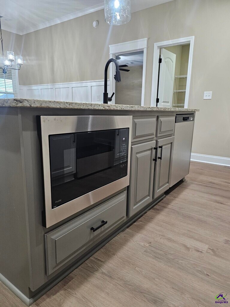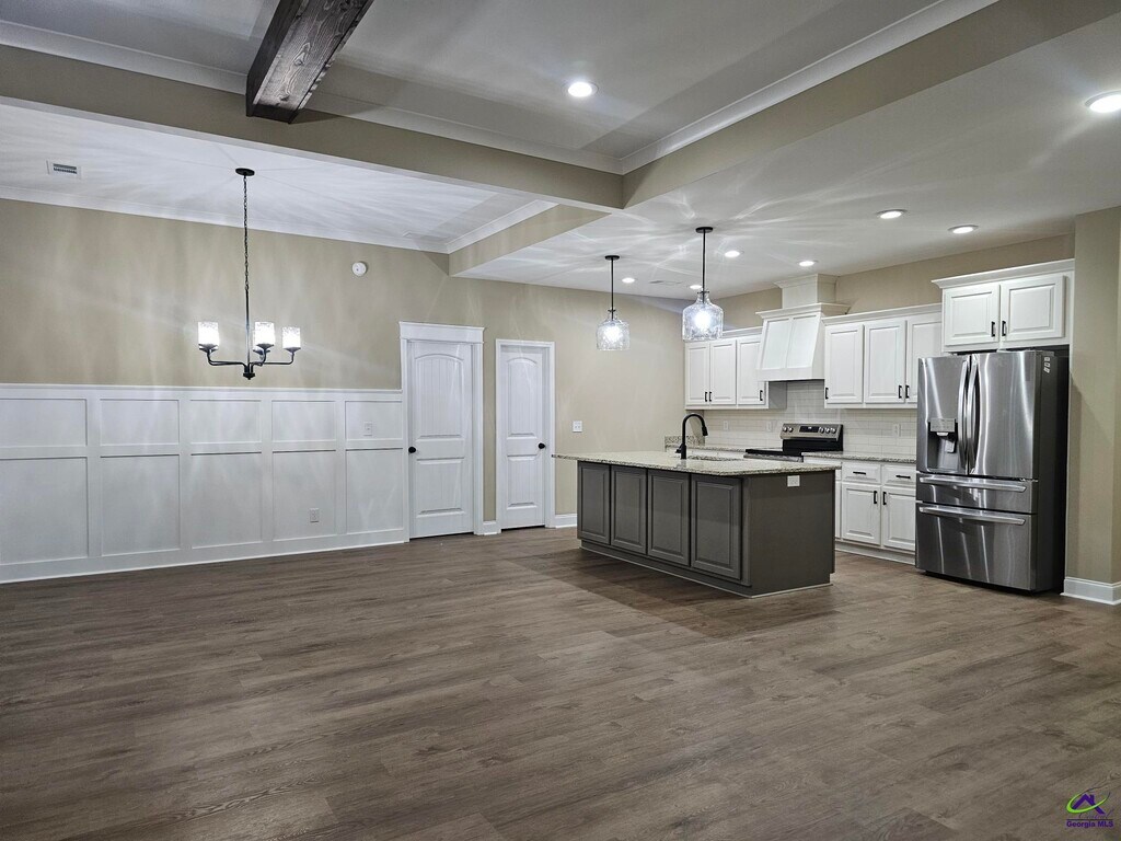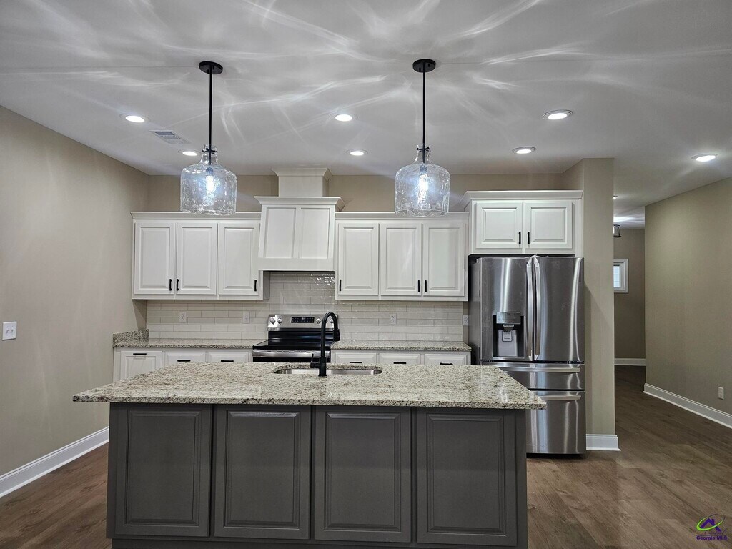 This beautifully crafted new construction residence offers 4 spacious bedrooms and 2 full bathrooms, designed with comfort and functionality in mind. Step inside to a large open floor plan perfect for entertaining or everyday living. The kitchen featuring custom cabinetry, granite countertops, a decorative hood vent, a large center island with a built-in microwave and a generous walk-in pantry. The family room has exposed wood beams and a gas fireplace, creating a warm and inviting atmosphere. The dining space offers views of the covered back porch and fully fenced backyard. Two-car garage with a convenient drop zone right inside the garage entry. LAWN SERVICE INCLUDED IN MONTHLY RENTAL FEE. Schedule your showing today, call Paula Cook at to view.