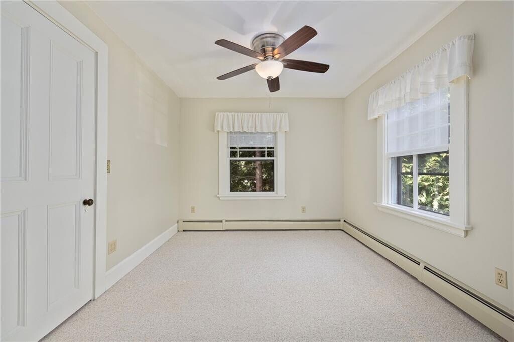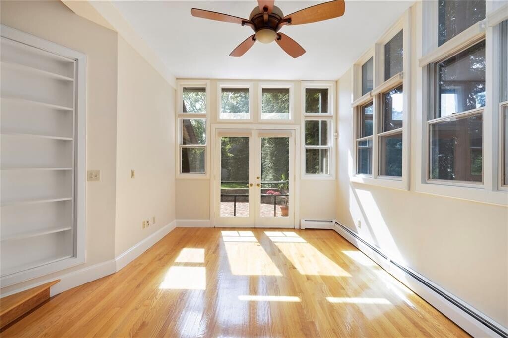 Available for an annual rental,this charming 3-bedroom,2.5-bathroom townhouse is tucked into Newport's desirable Kay/Catherine neighborhood. Surrounded by mature trees,the condo offers a sense of privacy along with access to a beautifully maintained shared yard. The first floor features a sunken living room with doors opening to a private patio,hardwood floors,a powder room,and a non-working fireplace that adds to the charm. Upstairs,the spacious primary bedroom includes carpeting and an en-suite bath with a tub. Two additional bedrooms,one with hardwood floors,share a full bathroom. Additional amenities include off-street parking and shared laundry in the basement. Please note: no pets are permitted per the condo association. MLS ID 1400610