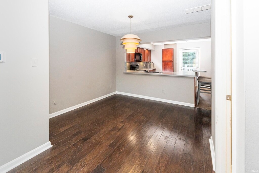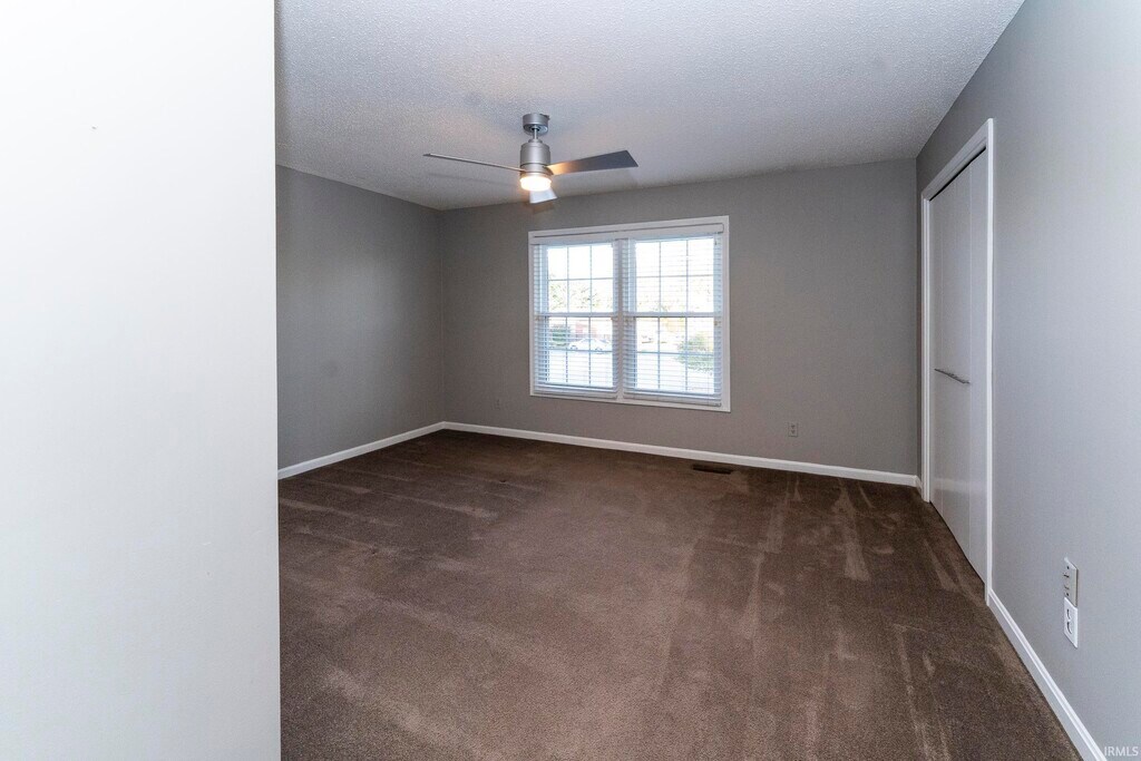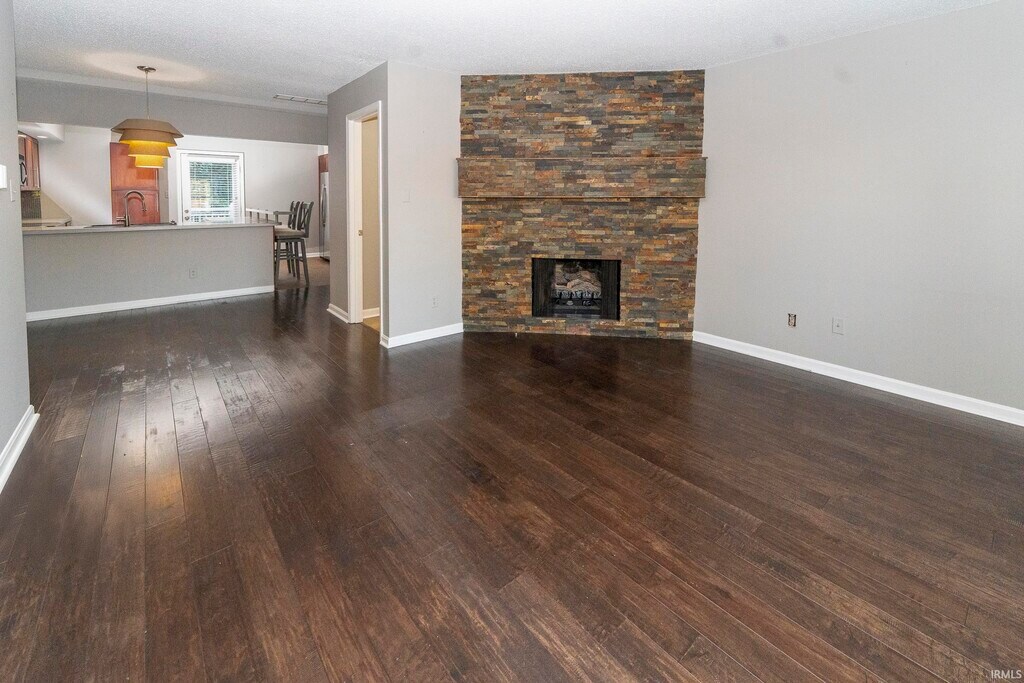 Remarkable, remodeled townhome condo featuring 2 bedrooms, 2.5 baths, and a one-car carport in the heart of Newburgh, close to gas stations, grocery stores, restaurants, and entertainment. A welcoming covered front porch leads into the spacious great room, where a cozy gas log fireplace with stone surround creates a warm focal point. Open to the living space is an informal dining area. A convenient half bath is located nearby. The kitchen is a true highlight, offering beautiful wood cabinetry, a breakfast bar with two bar stools, and all appliances included. Across from the kitchen, a laundry closet makes daily routines simple and efficient (new washer and dryer coming soon). A door off the kitchen leads to a small deck with a built-in storage shed. Stairs from the deck provide access to the community backyard area. Upstairs you’ll find two bedrooms and two full baths. The guest bedroom offers double closets and ceiling fan, while the primary suite provides a comfortable retreat with its own bath. This updated townhome offers modern conveniences and flexible living in a prime Newburgh location, ready for new tenants. Pets under 25lbs are allowed with a $400 non-refundable pet deposit and a monthly pet rent. No smoking. Trash included in monthly rent.